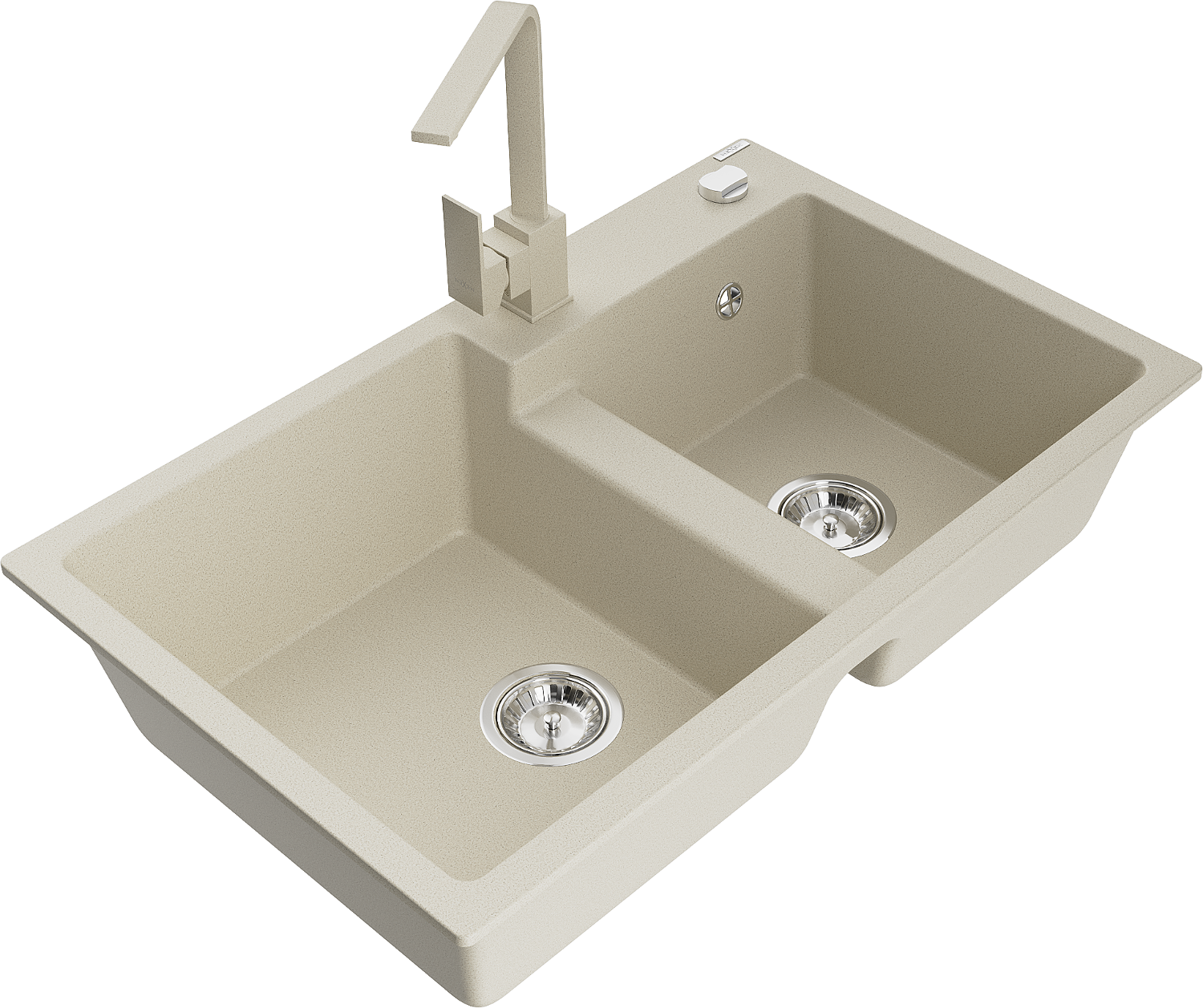 Mexen Tomas гранитна мивка с две отделения с кухненски смесител Rita, бежов - 6516-69-670300-69