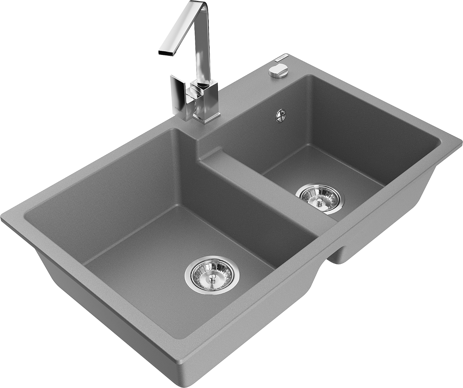 Mexen Tomas гранитна кухненска мивка с 2 корита и кухненски смесител Rita, сива - 6516-71-670300-00