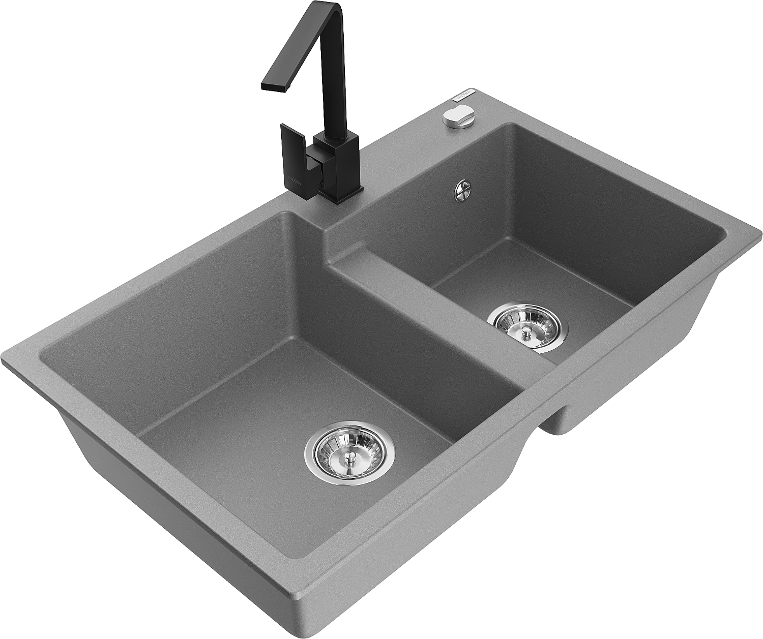 Mexen Tomas гранитна мивка с 2 камери с кухненски смесител Rita, сив - 6516-71-670300-70