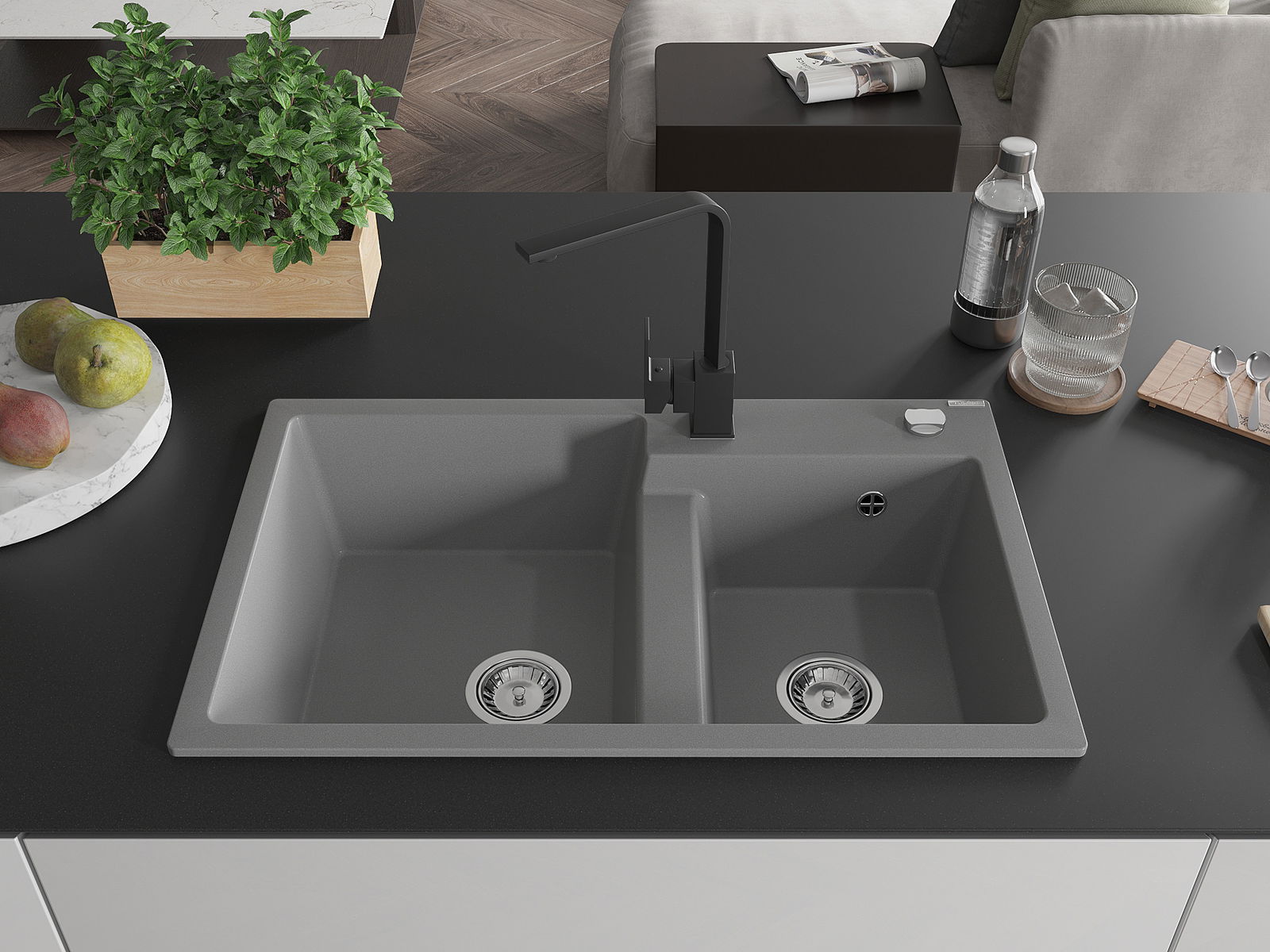 Мивката е направена от висококачествен гранит. Това е елегантно и най -вече практично допълнение към всяка кухня, независимо от нейния стил. Висококачествената и гранитна издръжливост осигуряват много години употреба.