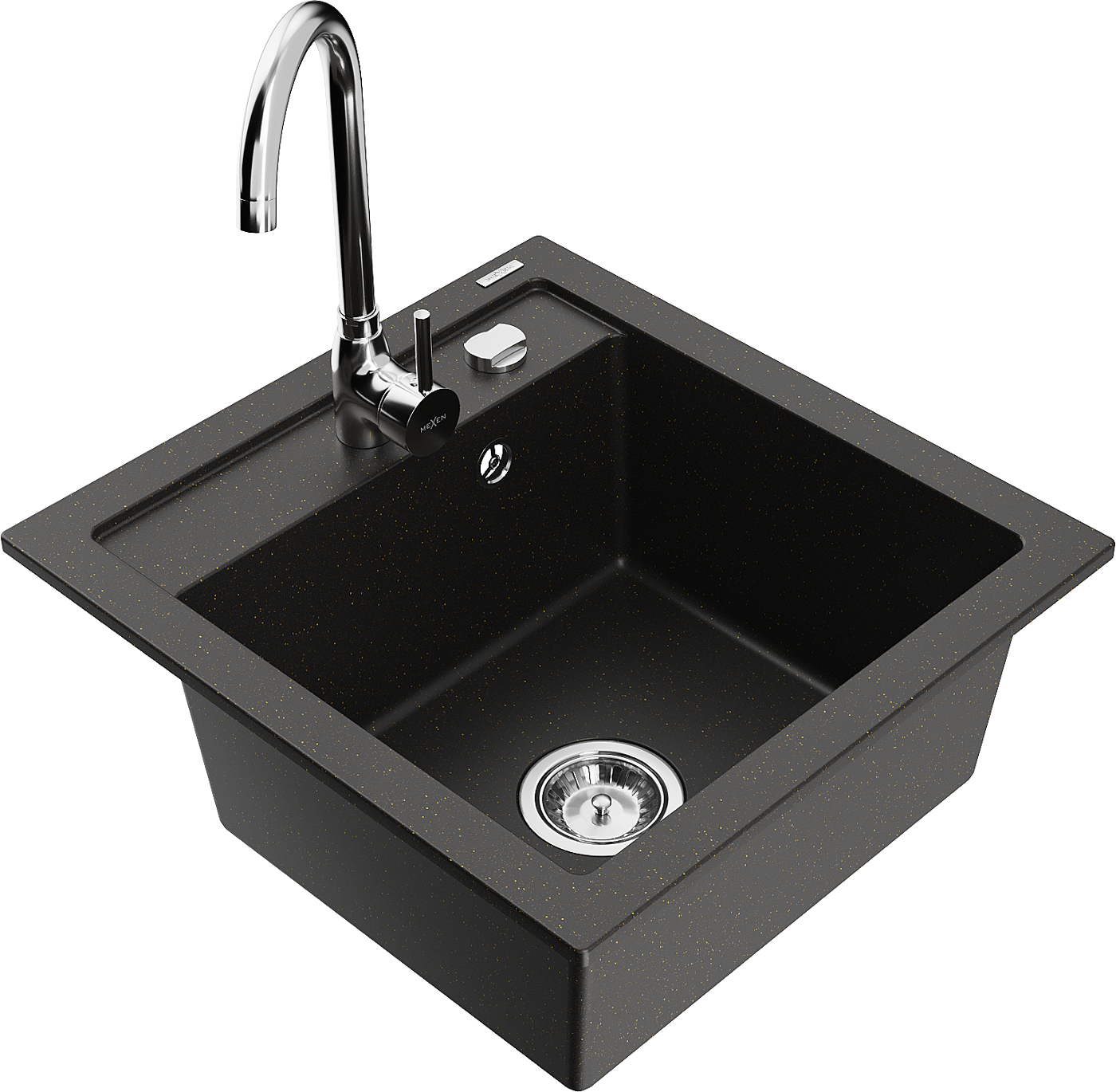Mexen Vito гранитна мивка с 1 отделение и кухненски смесител Telma, черен/златен металик - 6503-75-670200-00
