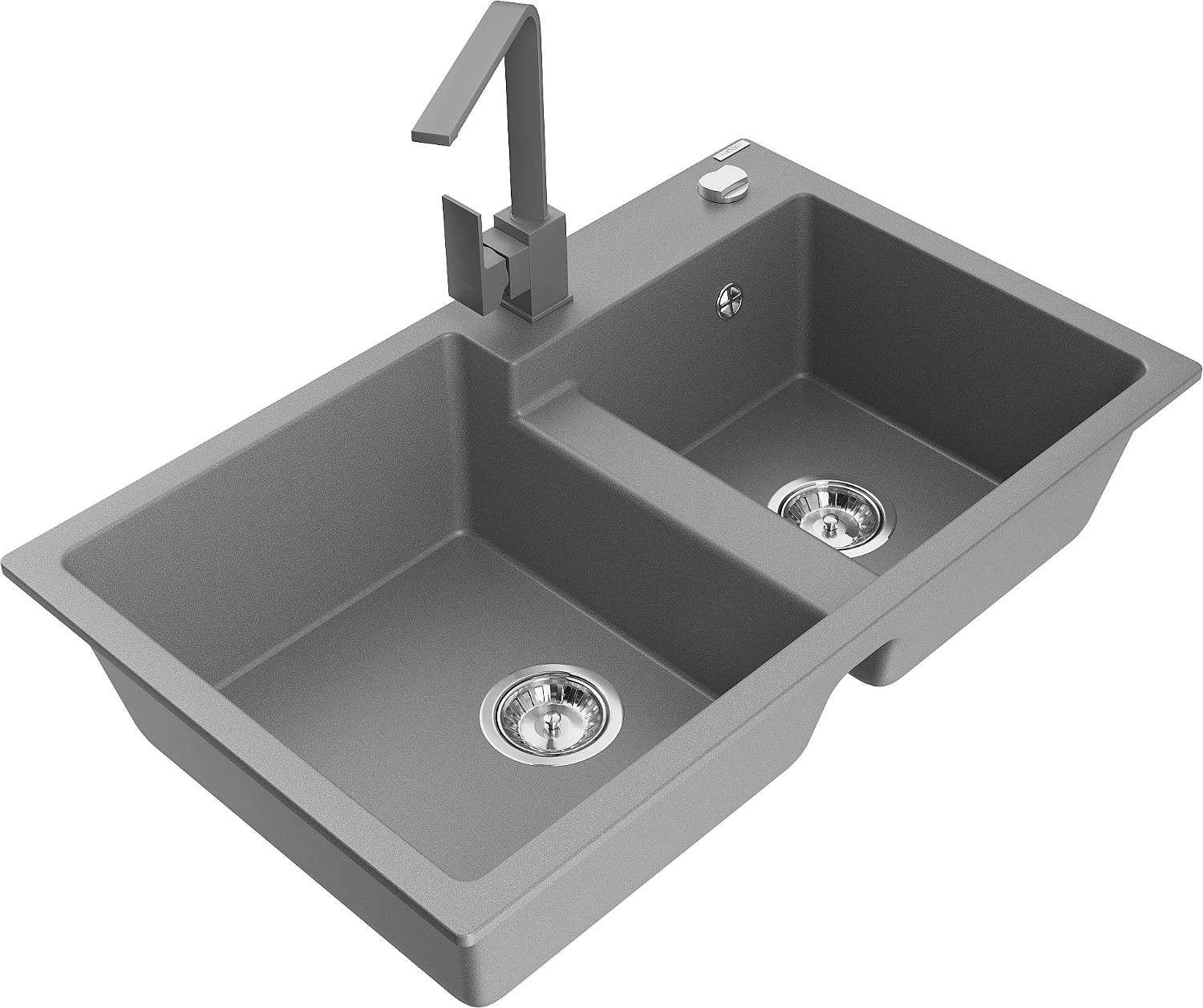 Mexen Tomas двоен кухненски гранитен мивка с батерия Rita, сив - 6516-71-670300-71
