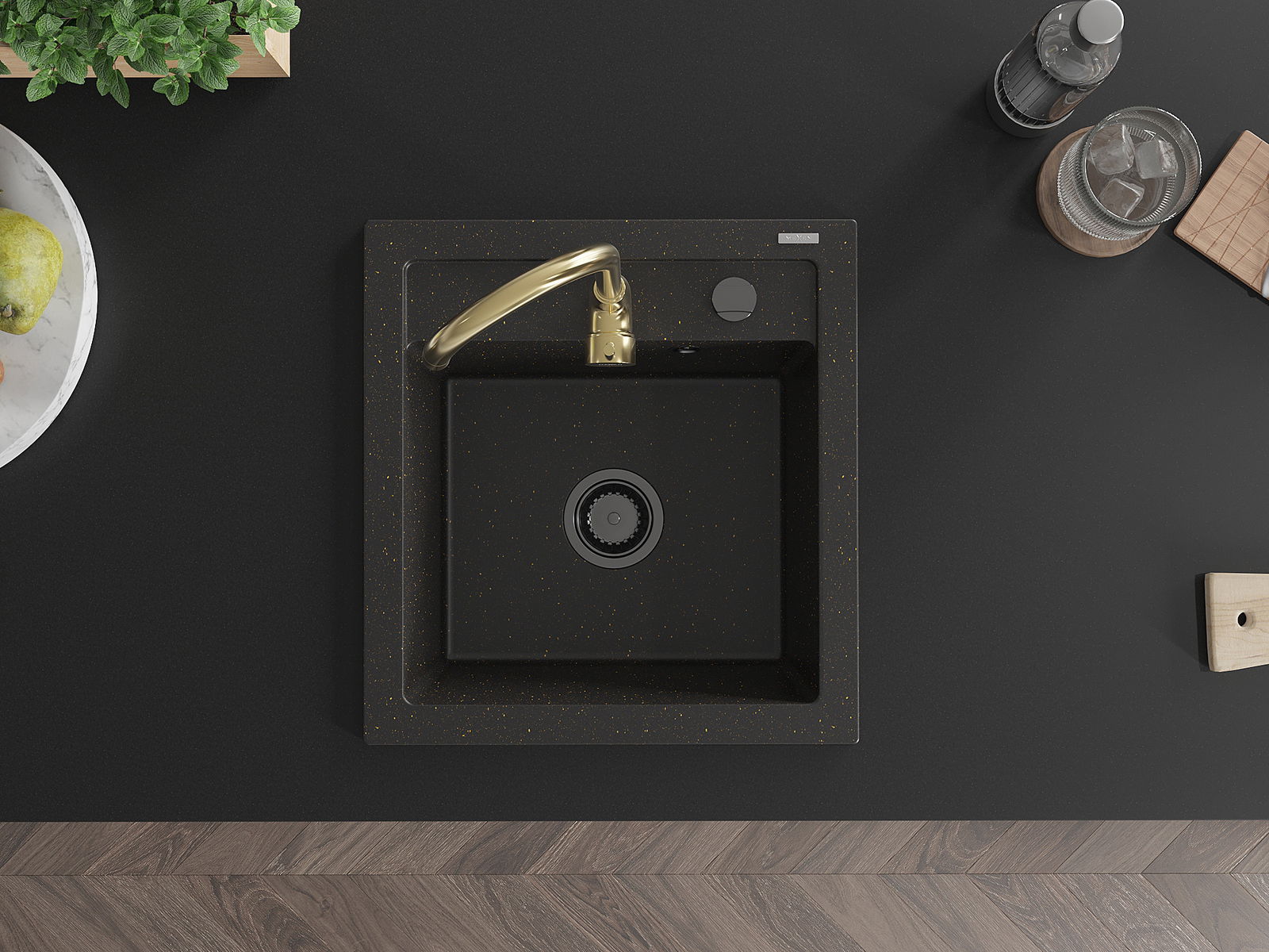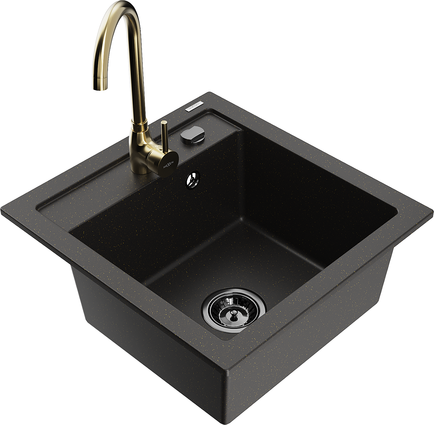 Mexen Vito мивка от гранит с едно корито и кухненски смесител Telma, черно/златист металик - 6503-75-670200-50-B