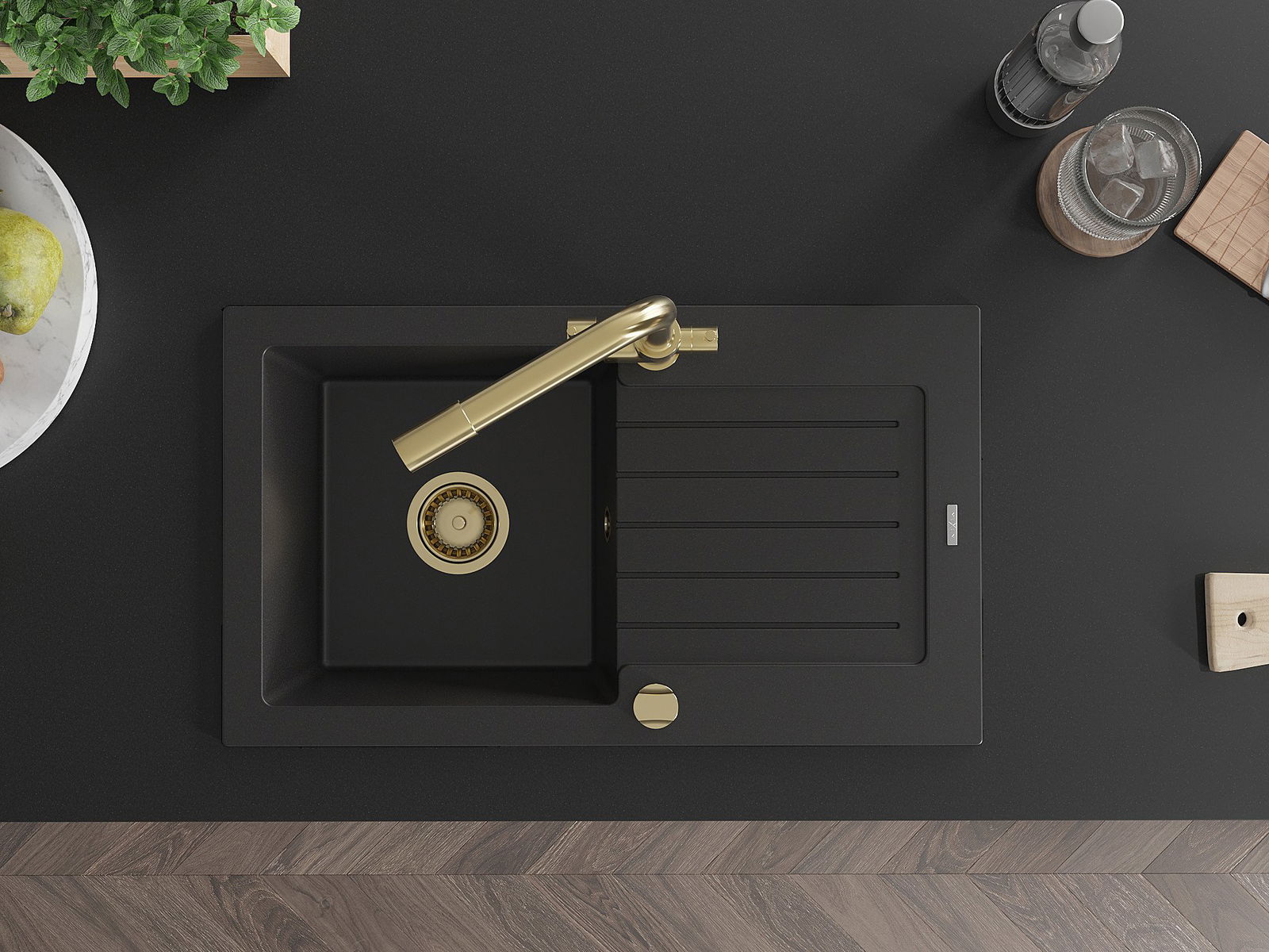 Mexen Pablo гранитна кухненска мивка с 1 гнездо с отцедник и кухненски