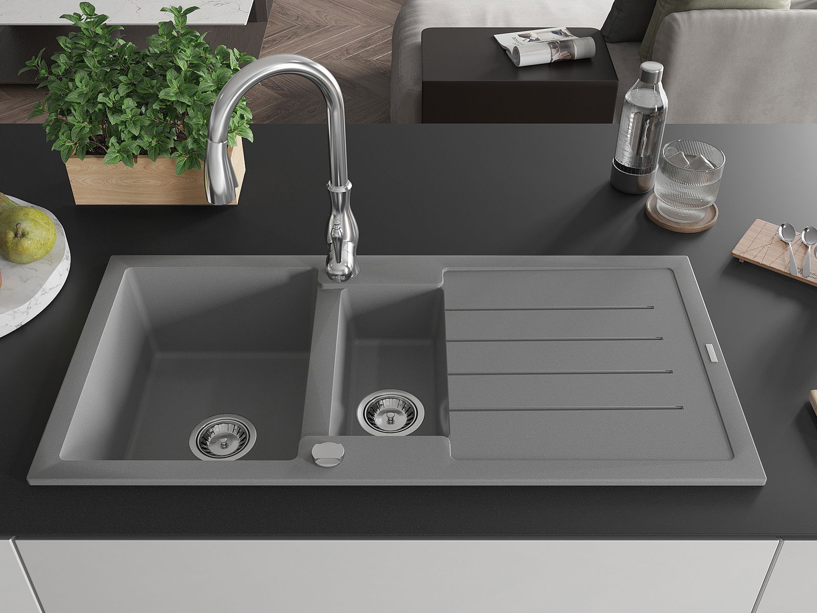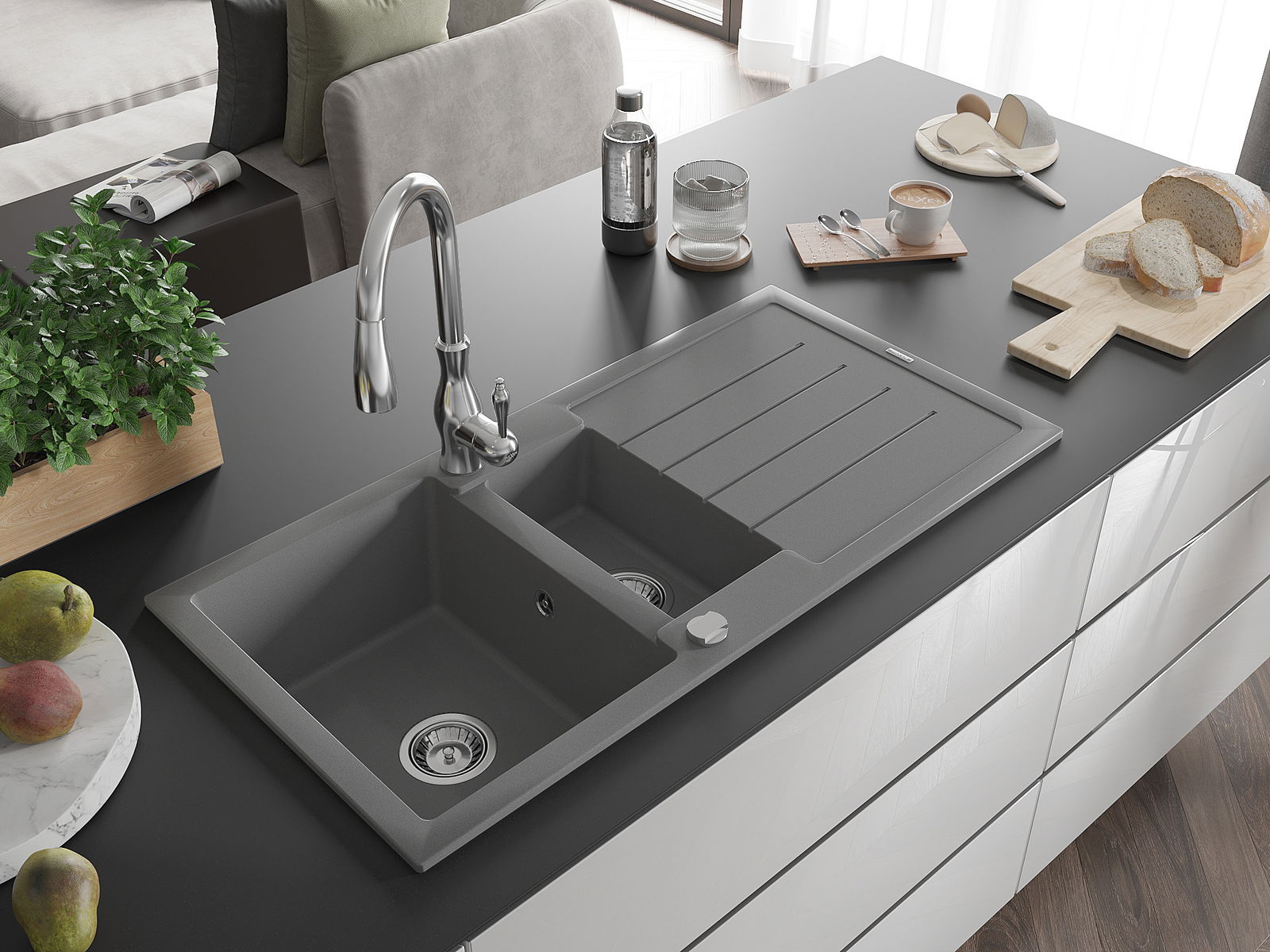 Мивката е направена от висококачествен гранит. Това е елегантно и най -вече практично допълнение към всяка кухня, независимо от нейния стил. Висококачествената и гранитна издръжливост осигуряват много години употреба.
