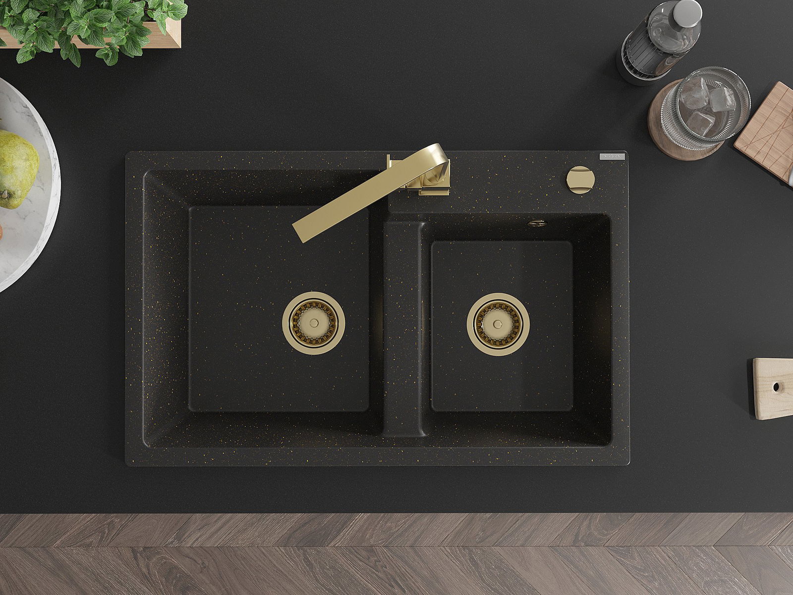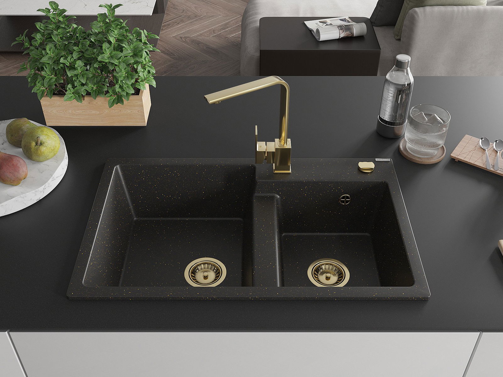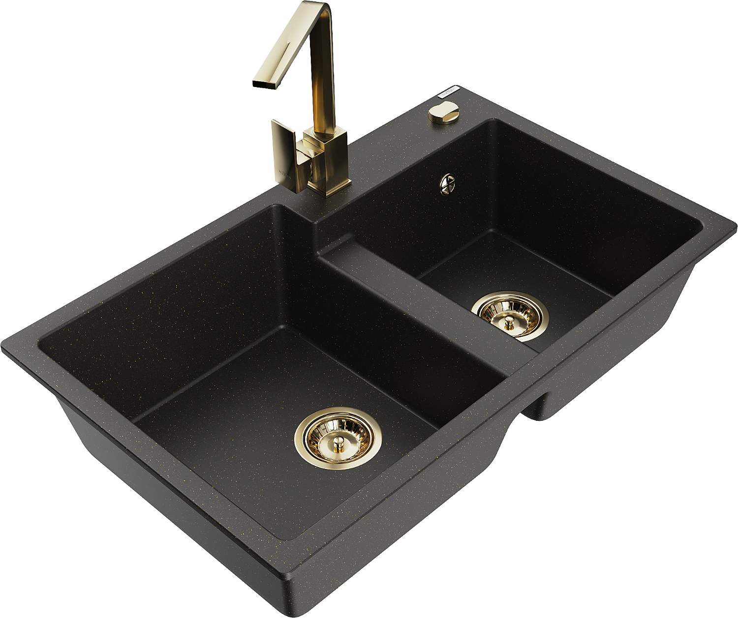 Mexen Tomas гранитна мивка с 2 камери с кухненски смесител Рита,