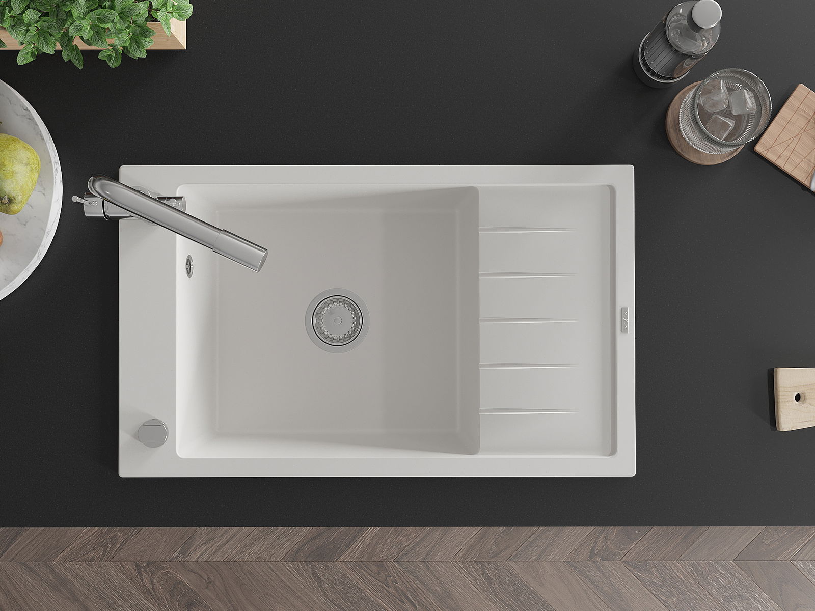 Mexen Elias гранитна мивка с 1 корито с отцедник и кухненски смесител Duero, бял - 6511-20-671600-00