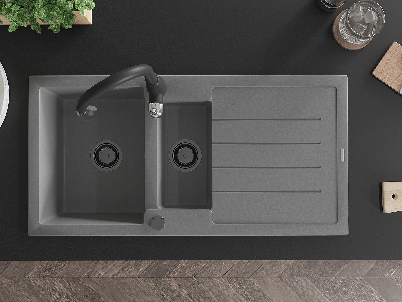 Мивката е направена от висококачествен гранит. Това е елегантно и най -вече практично допълнение към всяка кухня, независимо от нейния стил. Висококачествената и гранитна издръжливост осигуряват много години употреба.
