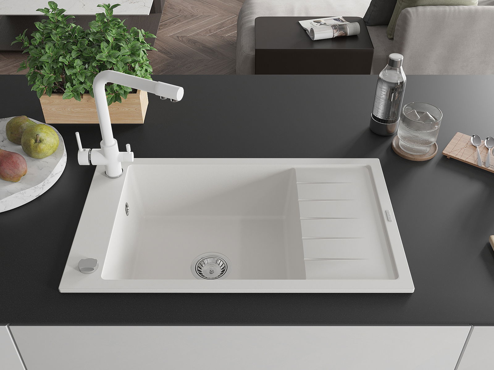 Повърхността на мивката е устойчива на петна и обезцветяване, благодарение на които е лесно да се почиства и запазва цвета си за дълго време. Естетически и практически допълващи всяка кухня.