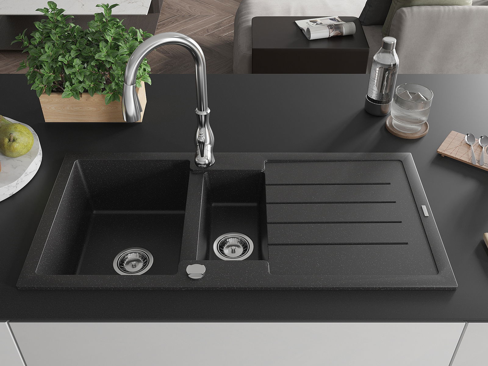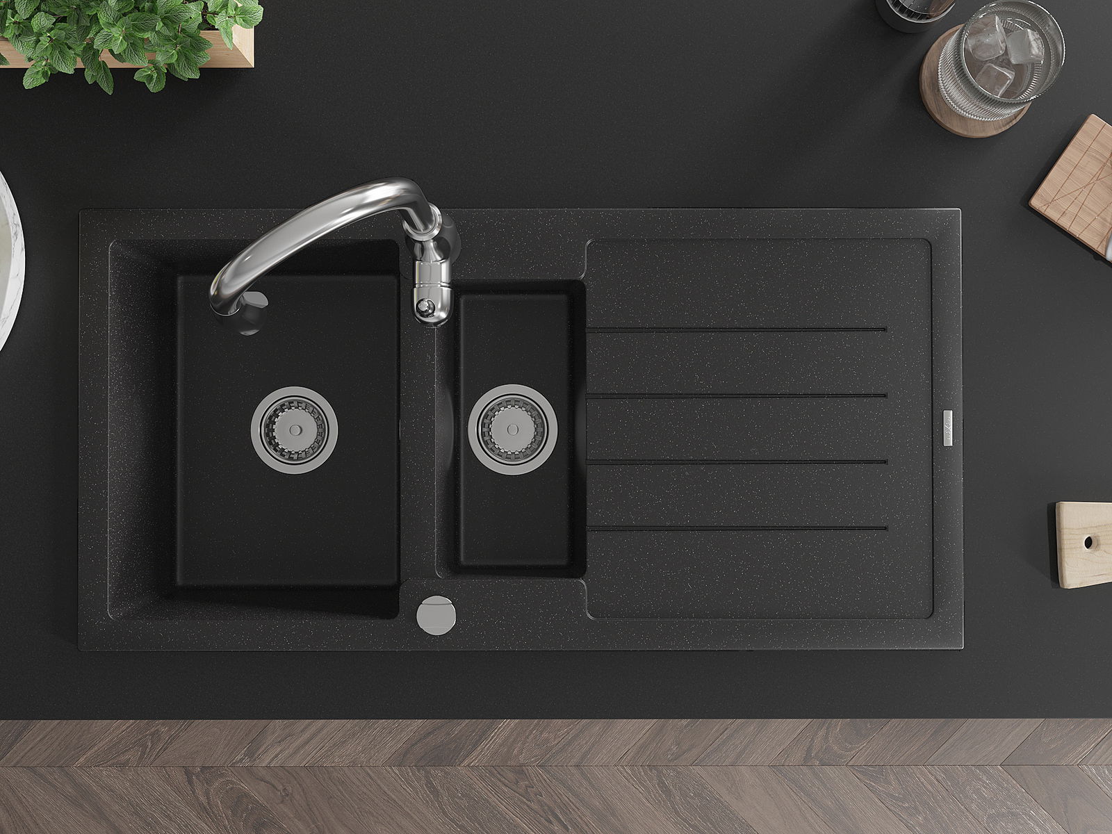 Мивката е направена от висококачествен гранит. Това е елегантно и най -вече практично допълнение към всяка кухня, независимо от нейния стил. Висококачествената и гранитна издръжливост осигуряват много години употреба.
