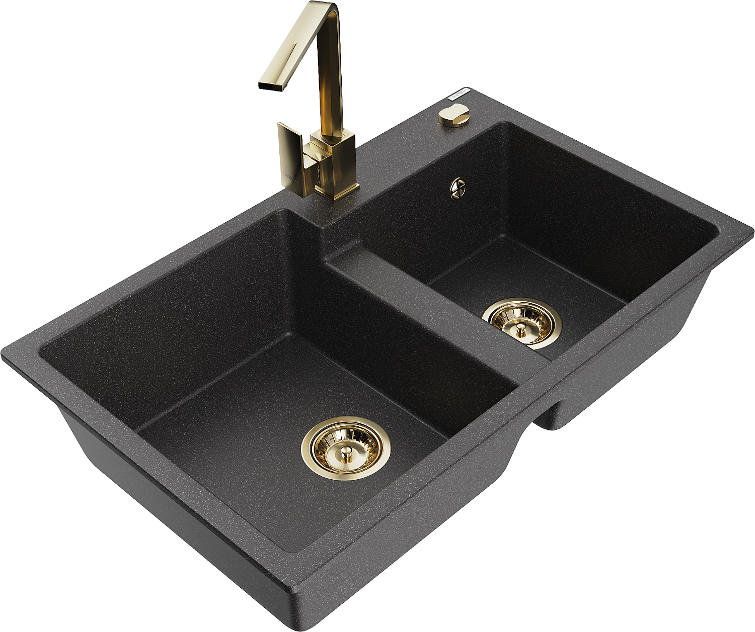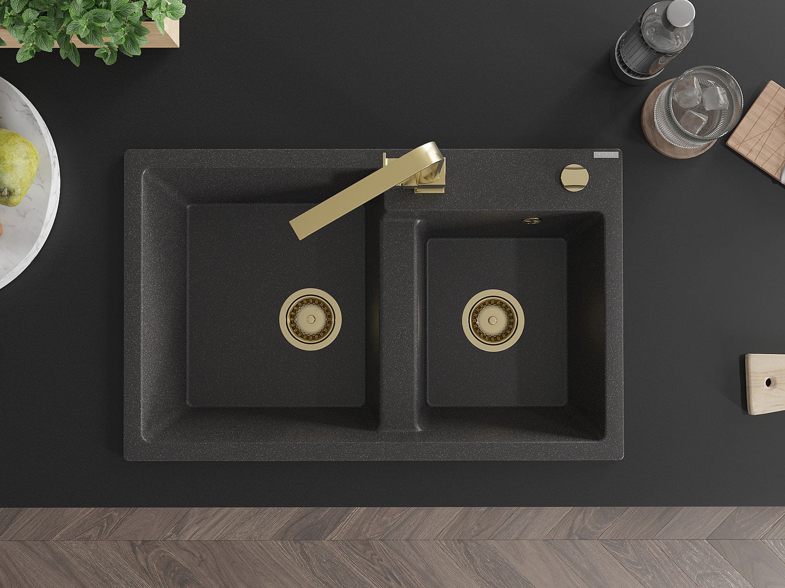 Mexen Tomas гранитна мивка с 2 отделения и кухненски смесител Rita, черен на пръски - 6516-76-670300-50