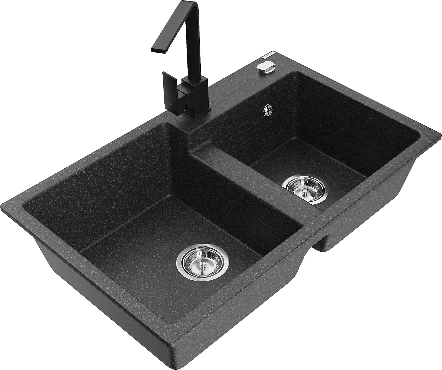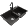 Mexen Tomas две мивки от гранит с кухненски смесител Rita, черно напукано