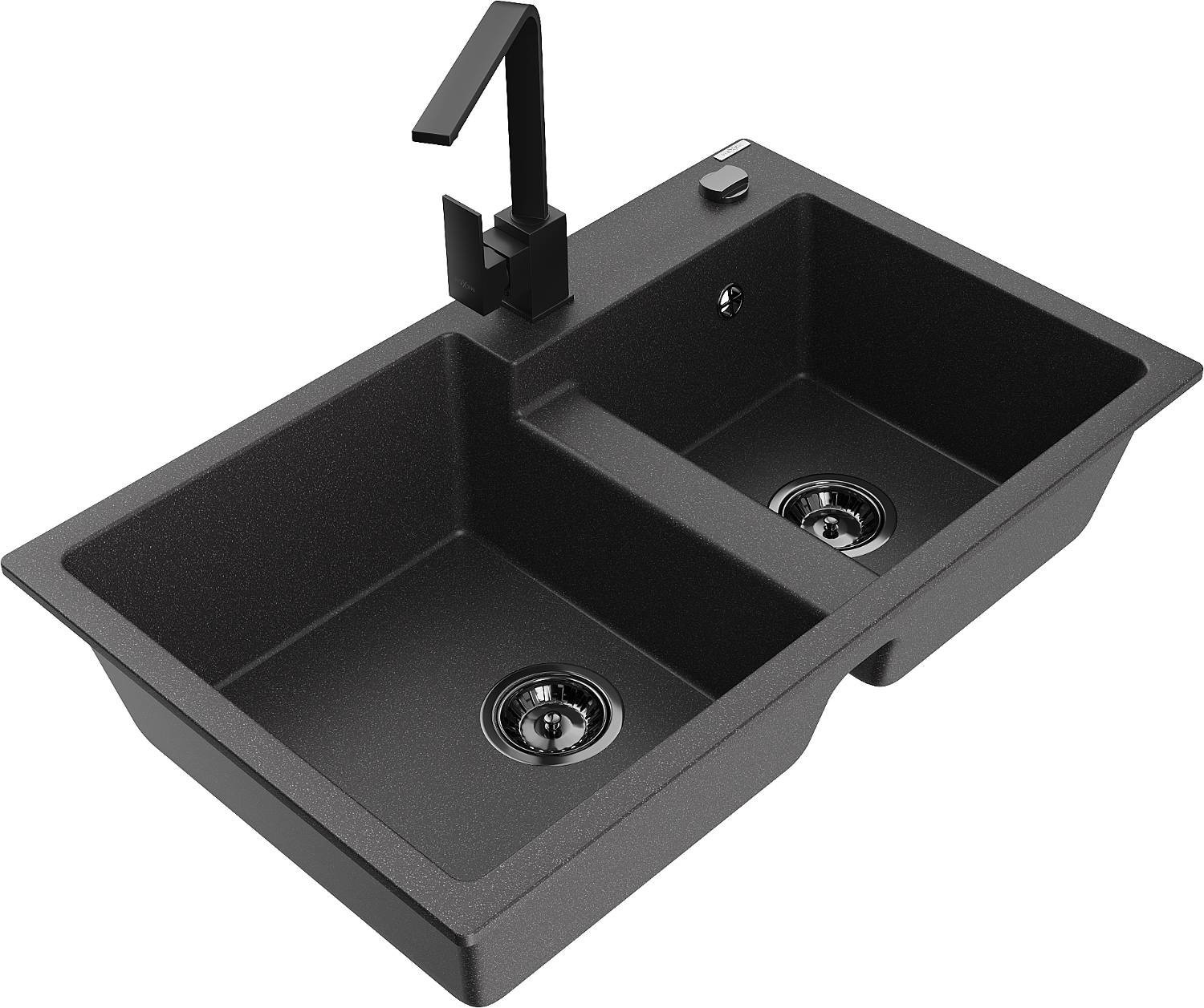Mexen Tomas гранитна мивка с 2 отделения и кухненски смесител Rita, черно напукано - 6516-76-670300-70-B