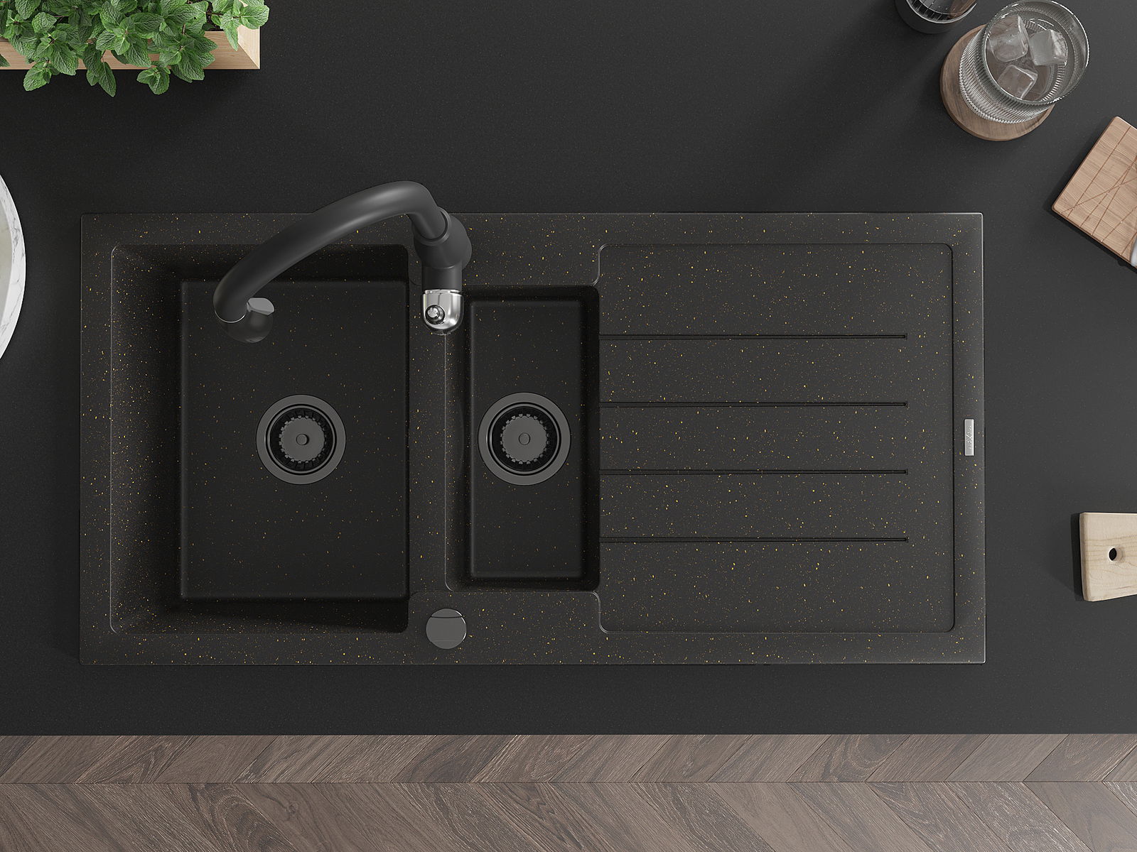 Мивката е направена от висококачествен гранит. Това е елегантно и най -вече практично допълнение към всяка кухня, независимо от нейния стил. Висококачествената и гранитна издръжливост осигуряват много години употреба.