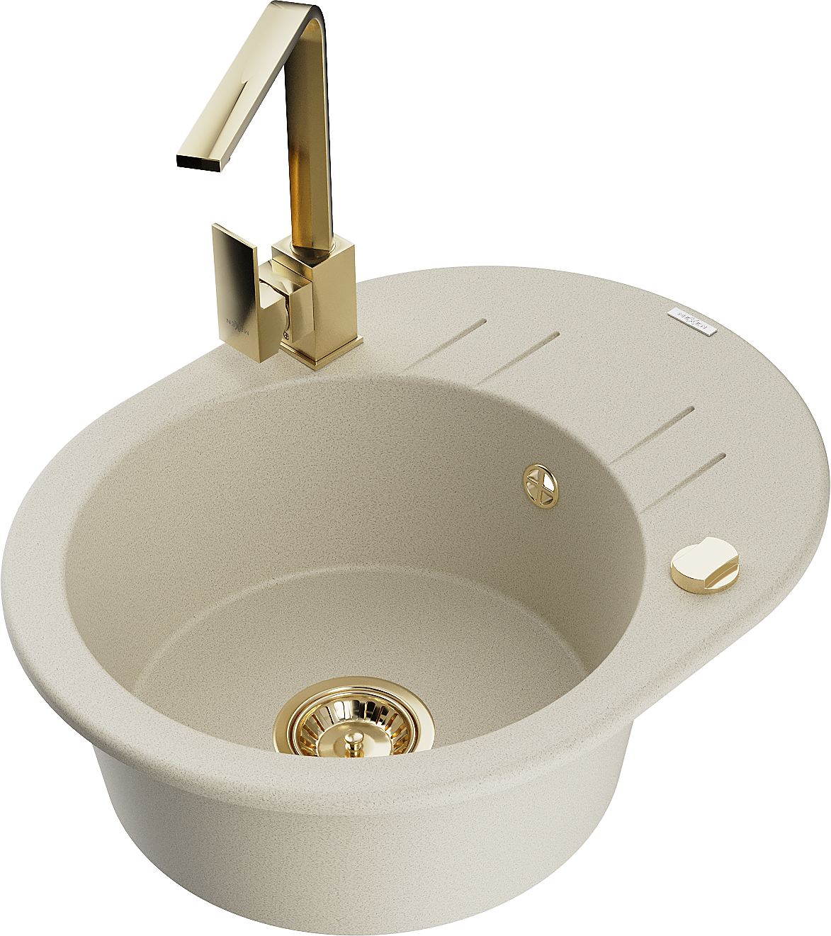 Mexen Kevin гранитна мивка с 1 камера със сушител и кухненски смесител Rita, бежов - 6517-69-670300-50
