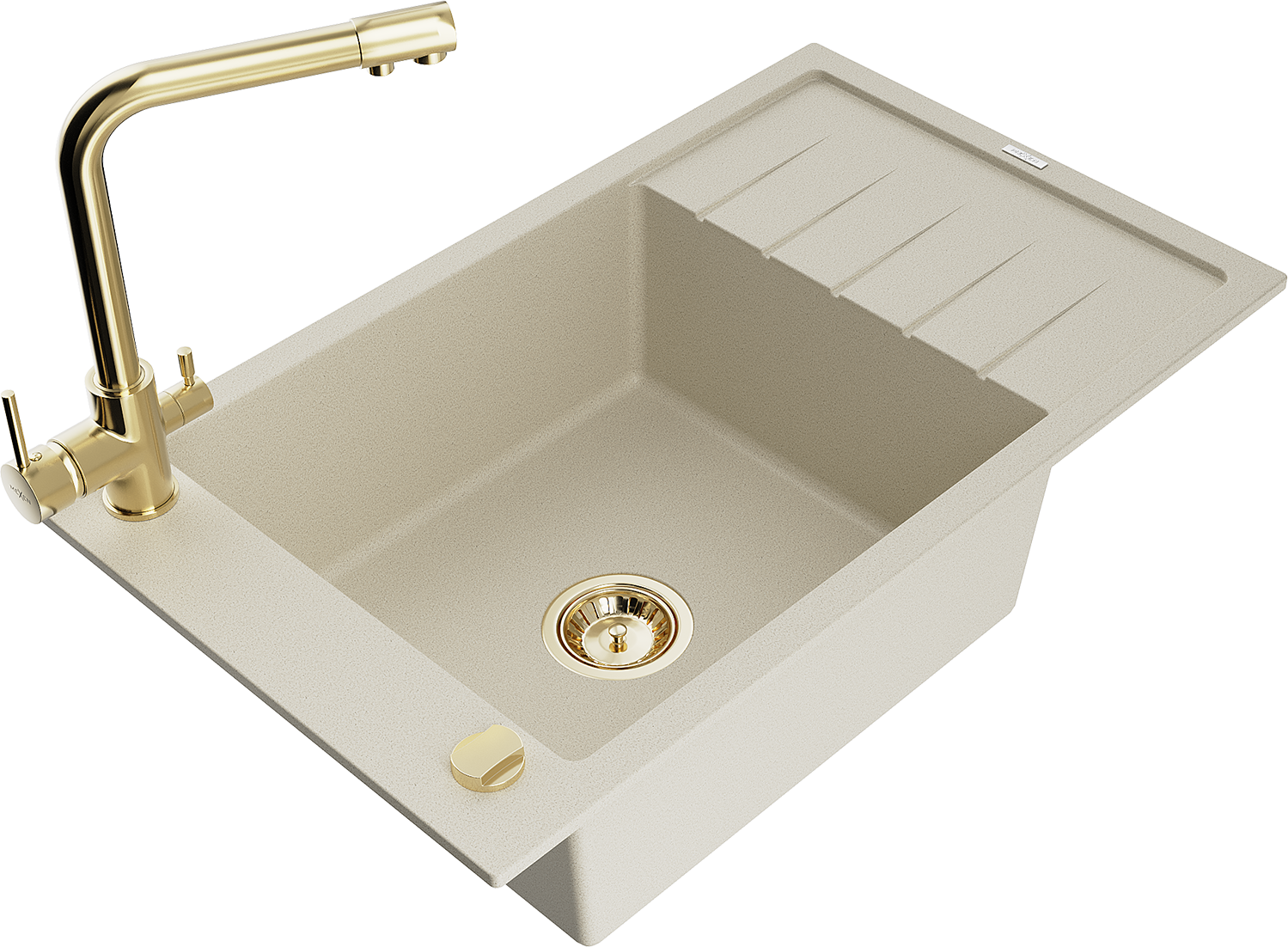 Мивка от гранит Mexen Elias с 1 отделение, отцеждачка и кухненски смесител Duero, бежов - 6511-69-671600-50