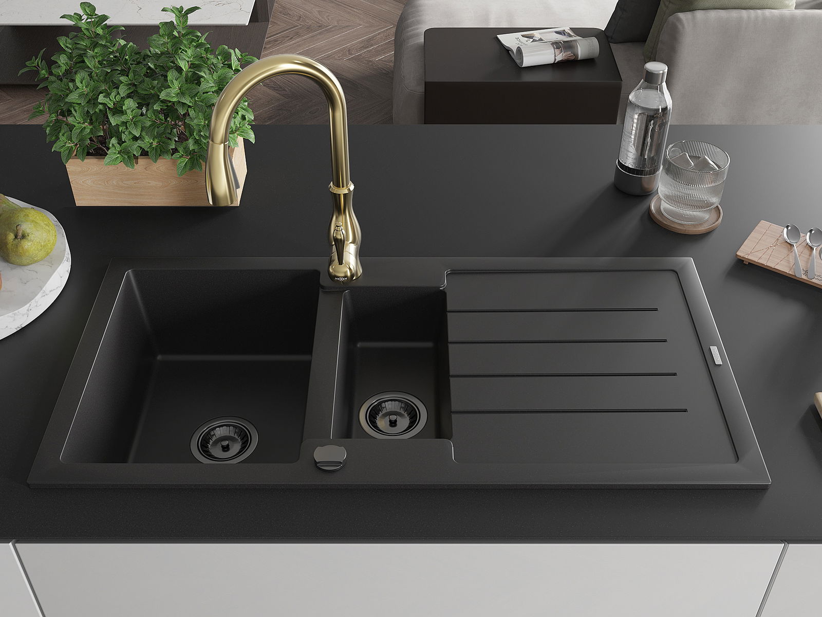 Мивката е направена от висококачествен гранит. Това е елегантно и най -вече практично допълнение към всяка кухня, независимо от нейния стил. Висококачествената и гранитна издръжливост осигуряват много години употреба.