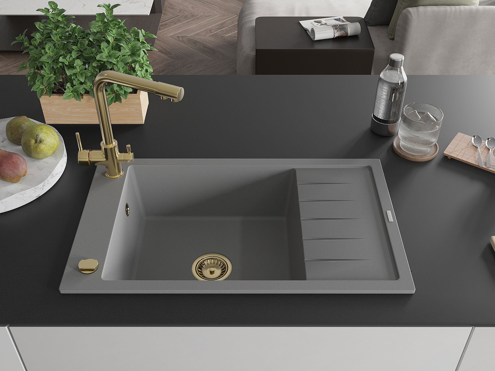 Мивката е направена от висококачествен гранит. Това е елегантно и най -вече практично допълнение към всяка кухня, независимо от нейния стил. Висококачествената и гранитна издръжливост осигуряват много години употреба.