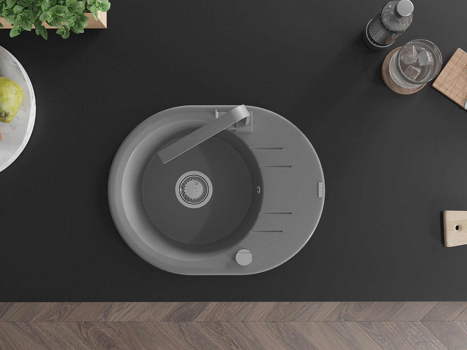 Мивката е направена от висококачествен гранит. Това е елегантно и най -вече практично допълнение към всяка кухня, независимо от нейния стил. Висококачествената и гранитна издръжливост осигуряват много години употреба.