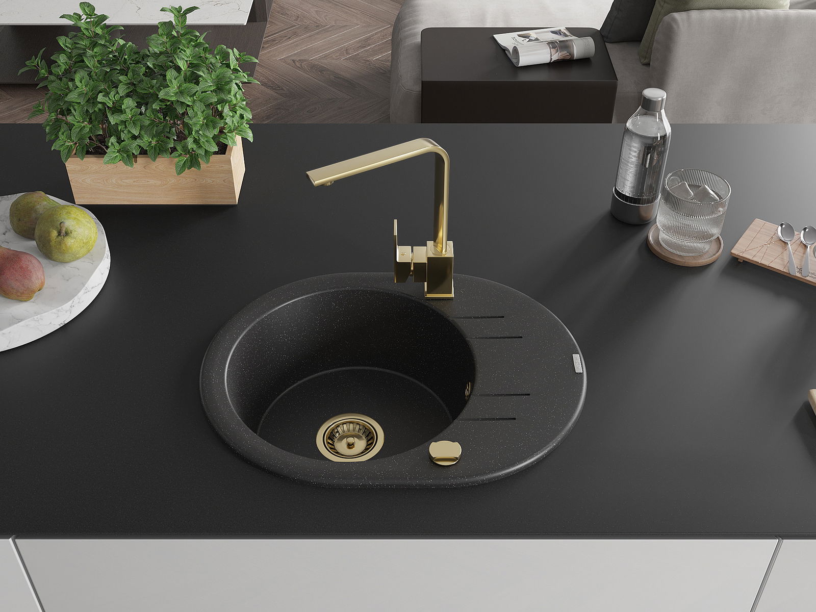 Мивката е направена от висококачествен гранит. Това е елегантно и най -вече практично допълнение към всяка кухня, независимо от нейния стил. Висококачествената и гранитна издръжливост осигуряват много години употреба.