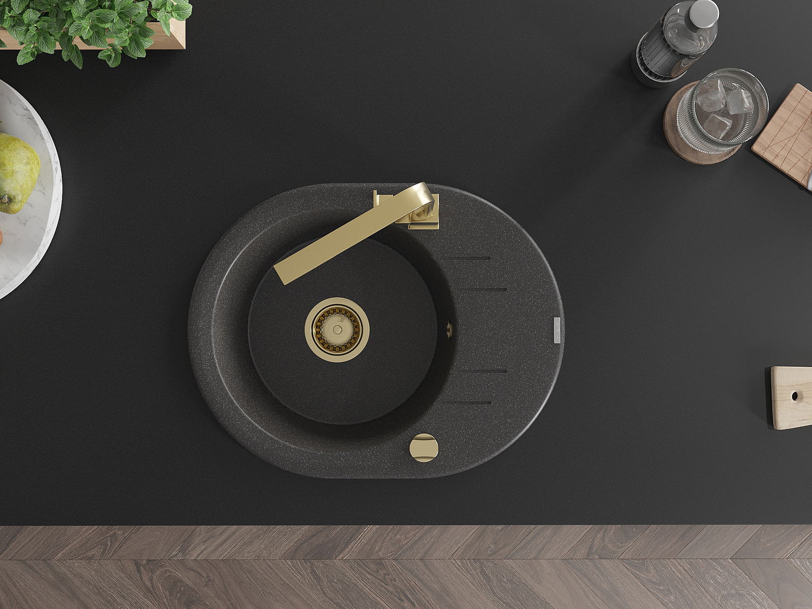 Мивката е направена от висококачествен гранит. Това е елегантно и най -вече практично допълнение към всяка кухня, независимо от нейния стил. Висококачествената и гранитна издръжливост осигуряват много години употреба.