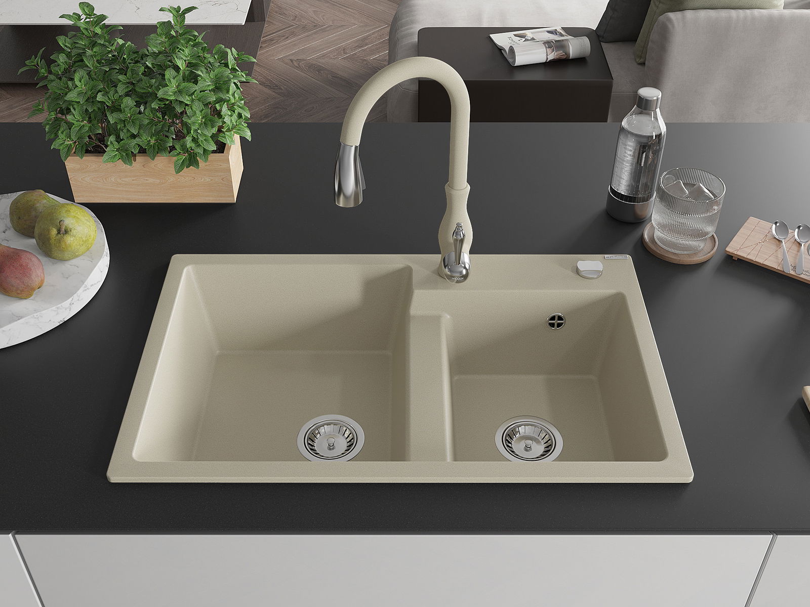 Повърхността на мивката е устойчива на петна и обезцветяване, благодарение на които е лесно да се почиства и запазва цвета си за дълго време. Естетически и практически допълващи всяка кухня.