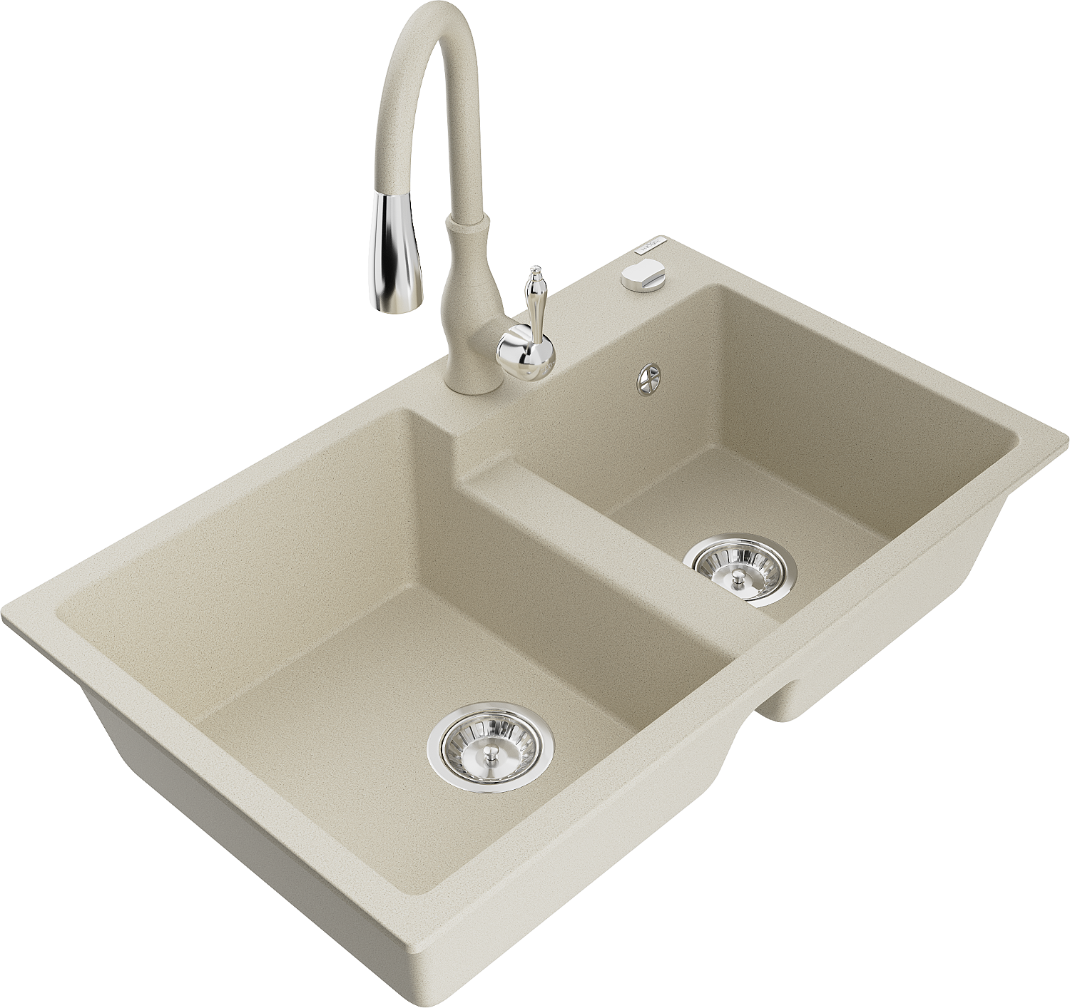 Mexen Tomas гранитна мивка с 2 отделения и кухненски смесител Savita, бежов - 6516-69-672601-69