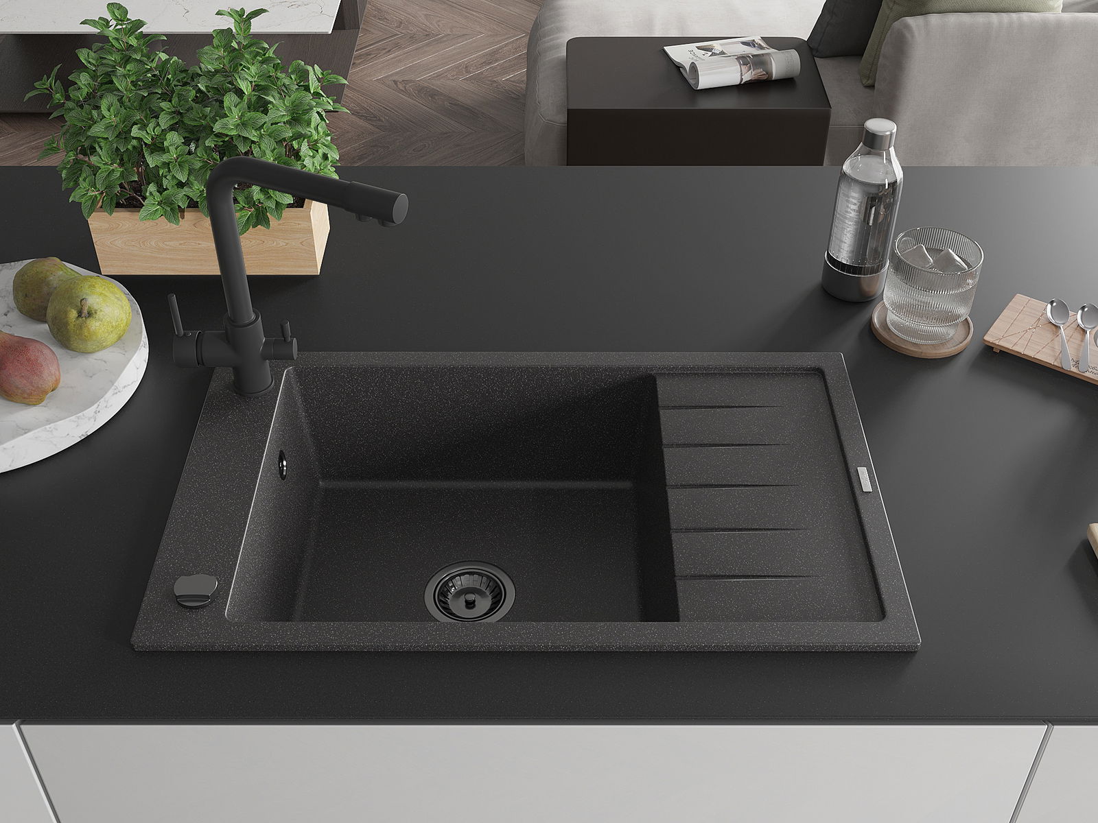 Мивката е направена от висококачествен гранит. Това е елегантно и най -вече практично допълнение към всяка кухня, независимо от нейния стил. Висококачествената и гранитна издръжливост осигуряват много години употреба.