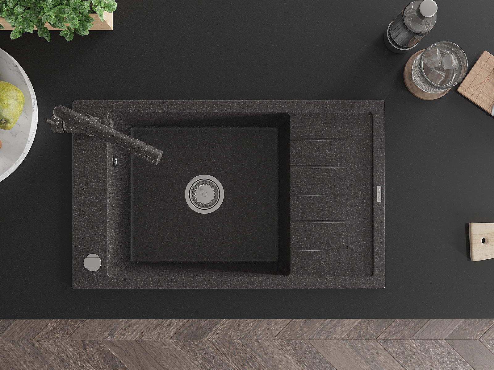 Мивката е направена от висококачествен гранит. Това е елегантно и най -вече практично допълнение към всяка кухня, независимо от нейния стил. Висококачествената и гранитна издръжливост осигуряват много години употреба.