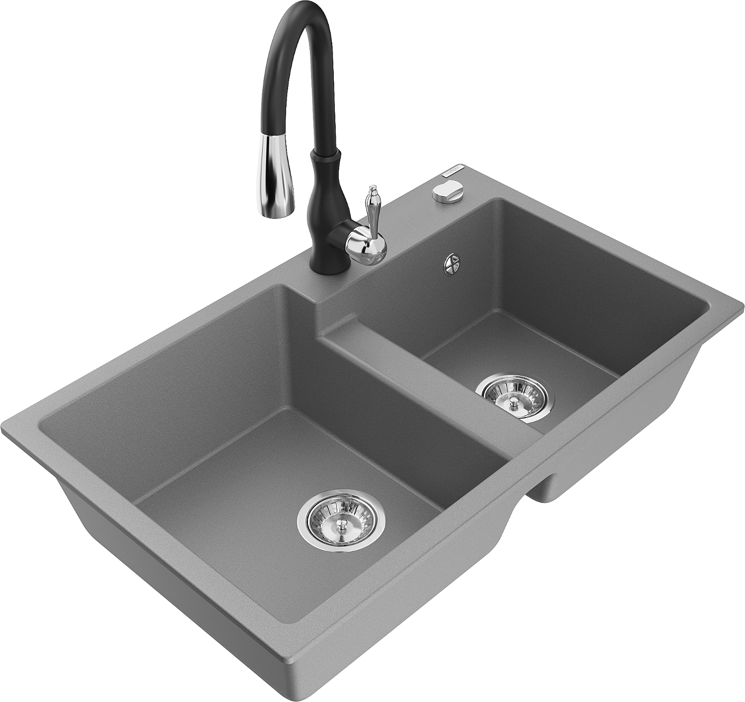 Mexen Tomas гранитна мивка с 2 камери с кухненски смесител Savita, сив - 6516-71-672601-70