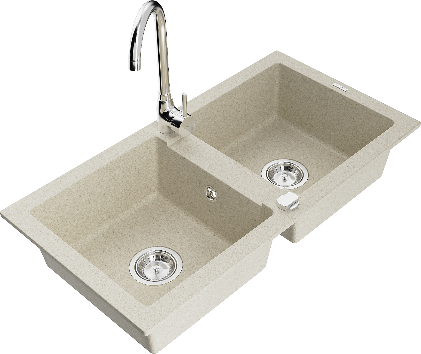 Mexen Mario гранитна мивка с 2 отделения и кухненски смесител Telma, бежов - 6504-69-670200-00