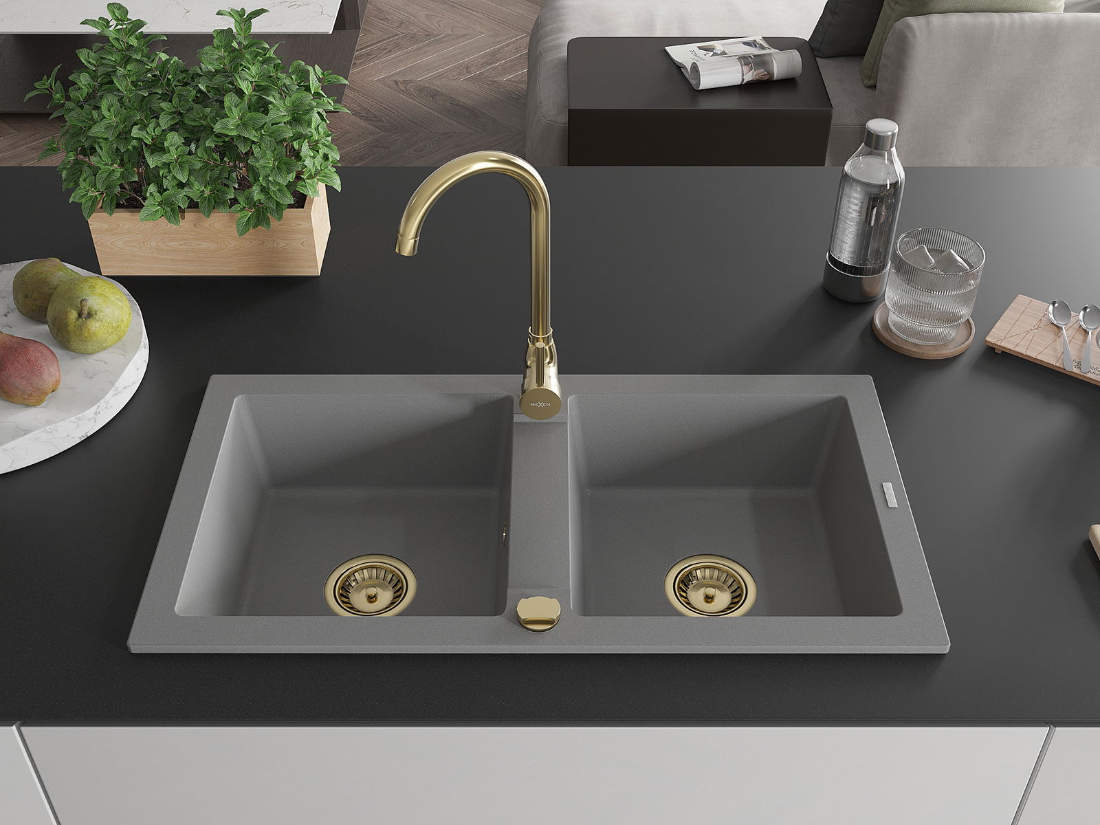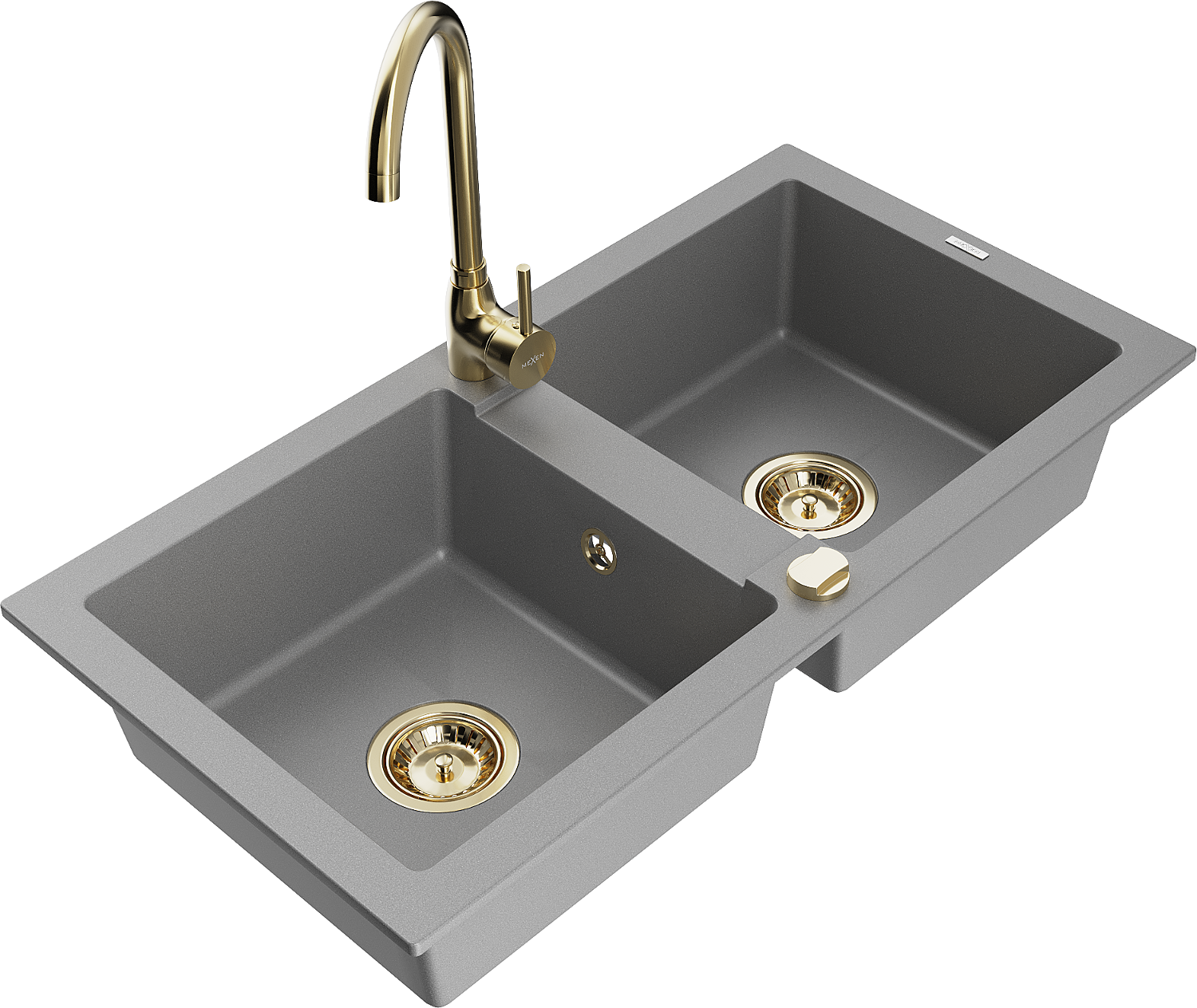 Mexen Mario двоен гранитен мивка с кухненски смесител Telma, сив - 6504-71-670200-50