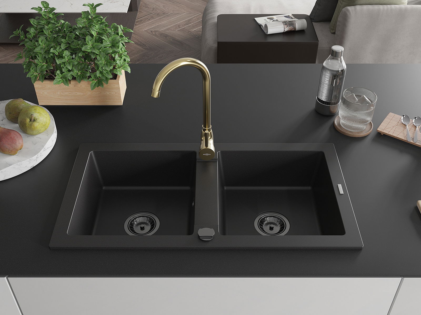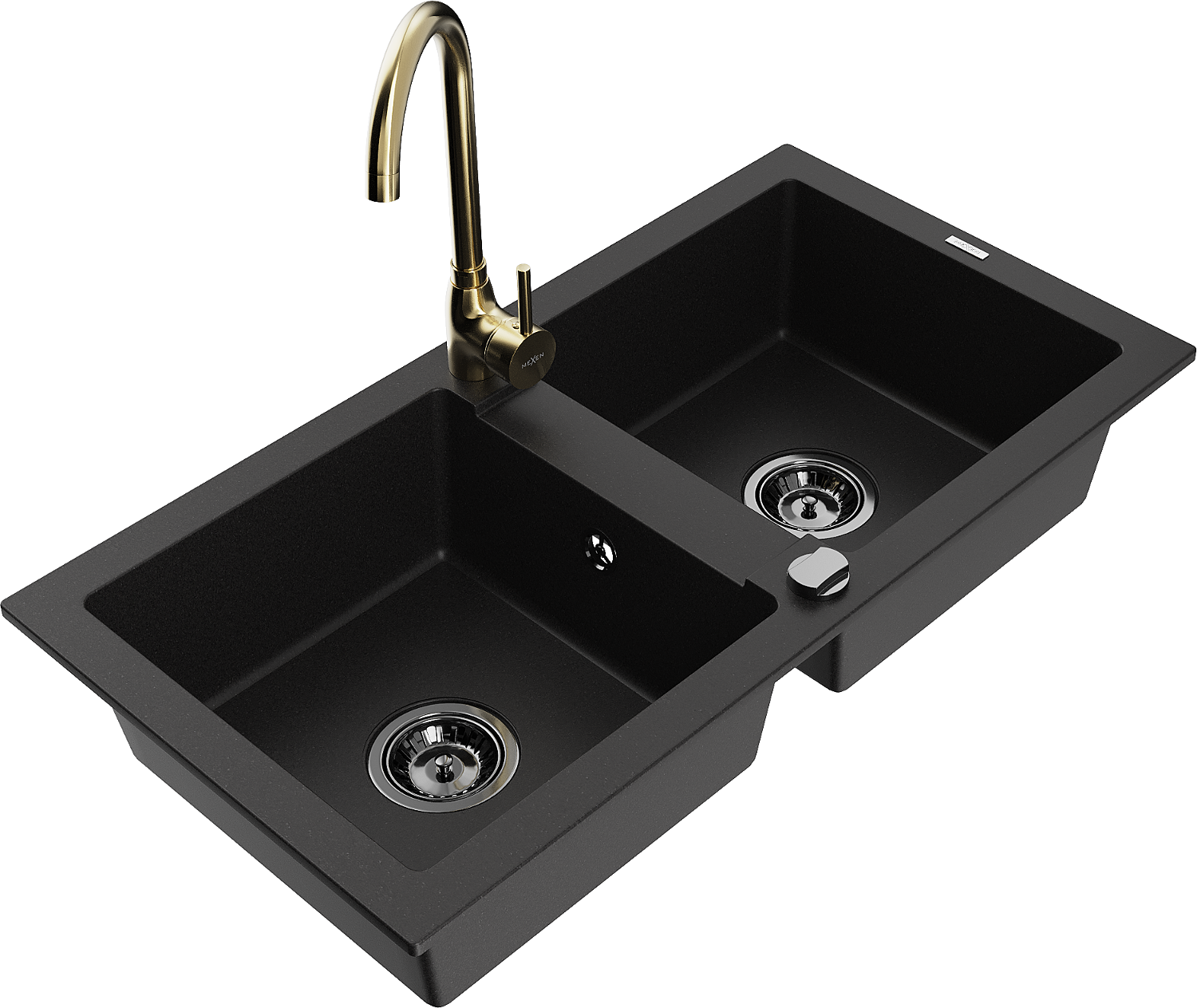 Mexen Mario мивка гранитна 2-камерна с кухненски смесител Telma, черен - 6504-77-670200-50-B