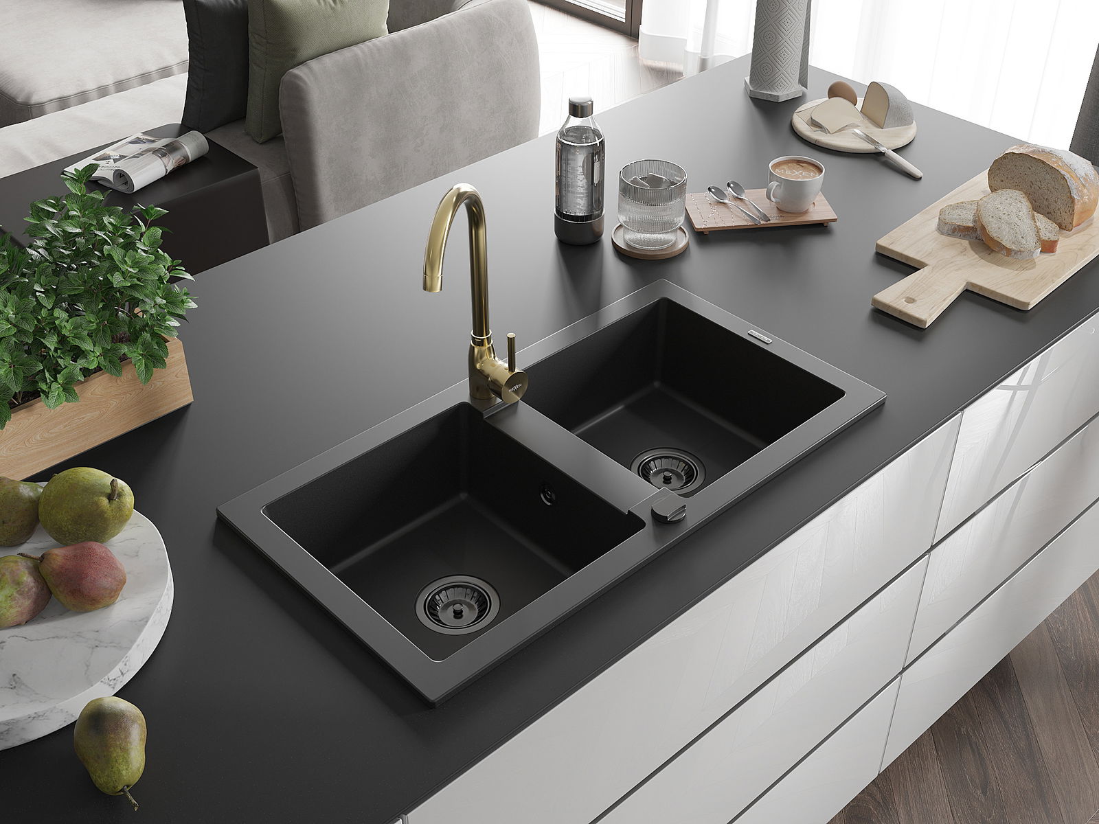 Мивката е направена от висококачествен гранит. Това е елегантно и най -вече практично допълнение към всяка кухня, независимо от нейния стил. Висококачествената и гранитна издръжливост осигуряват много години употреба.
