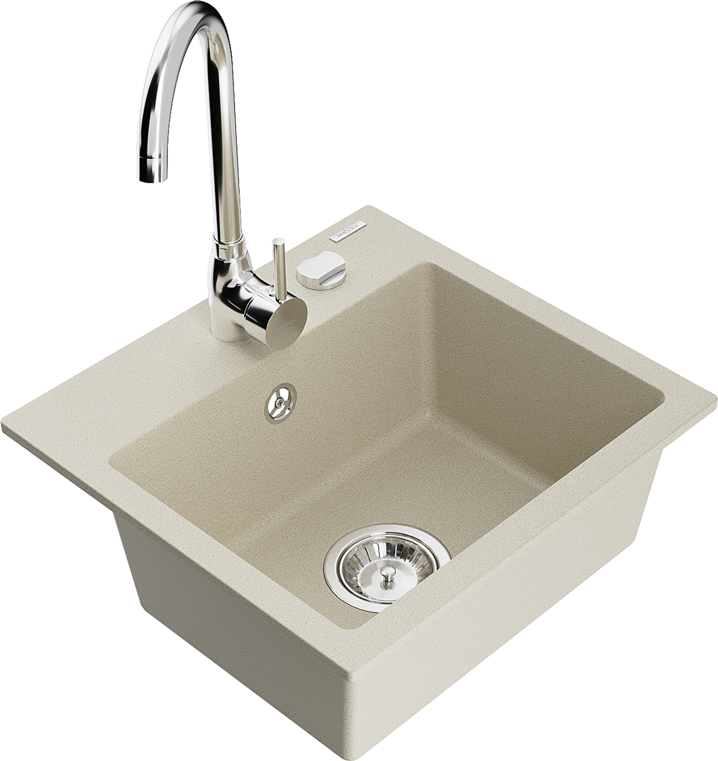 Mexen Milo гранитна мивка с 1 камера с кухненски смесител Telma, бежова - 6505-69-670200-00