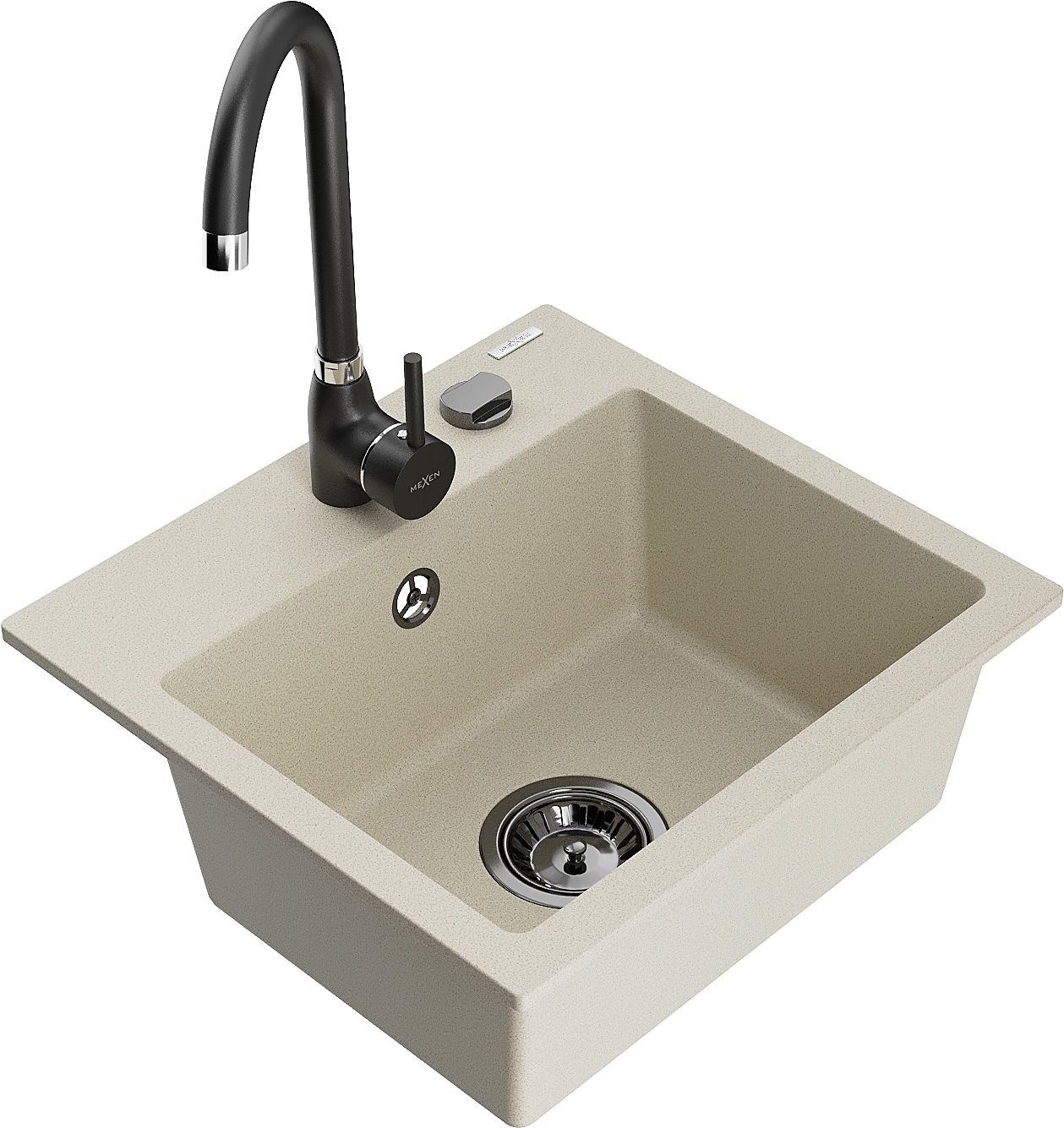 Mexen Milo гранитна мивка с 1 корито с кухненски смесител Telma, бежов - 6505-69-670200-70