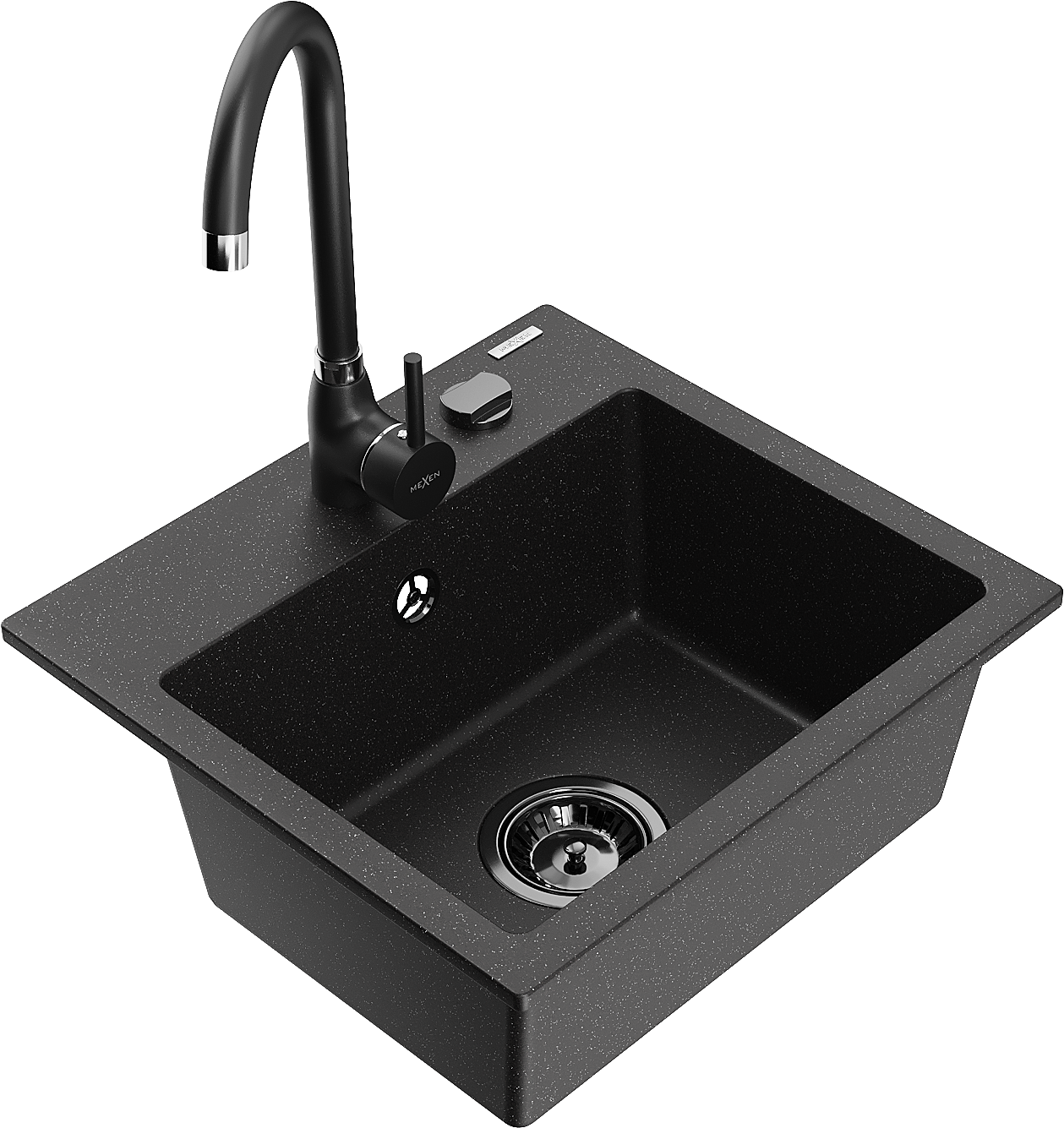 Mexen Milo гранитна кухненска мивка с 1 отделение и кухненски смесител Telma, черен/сребрист - 6505-73-670200-70-B