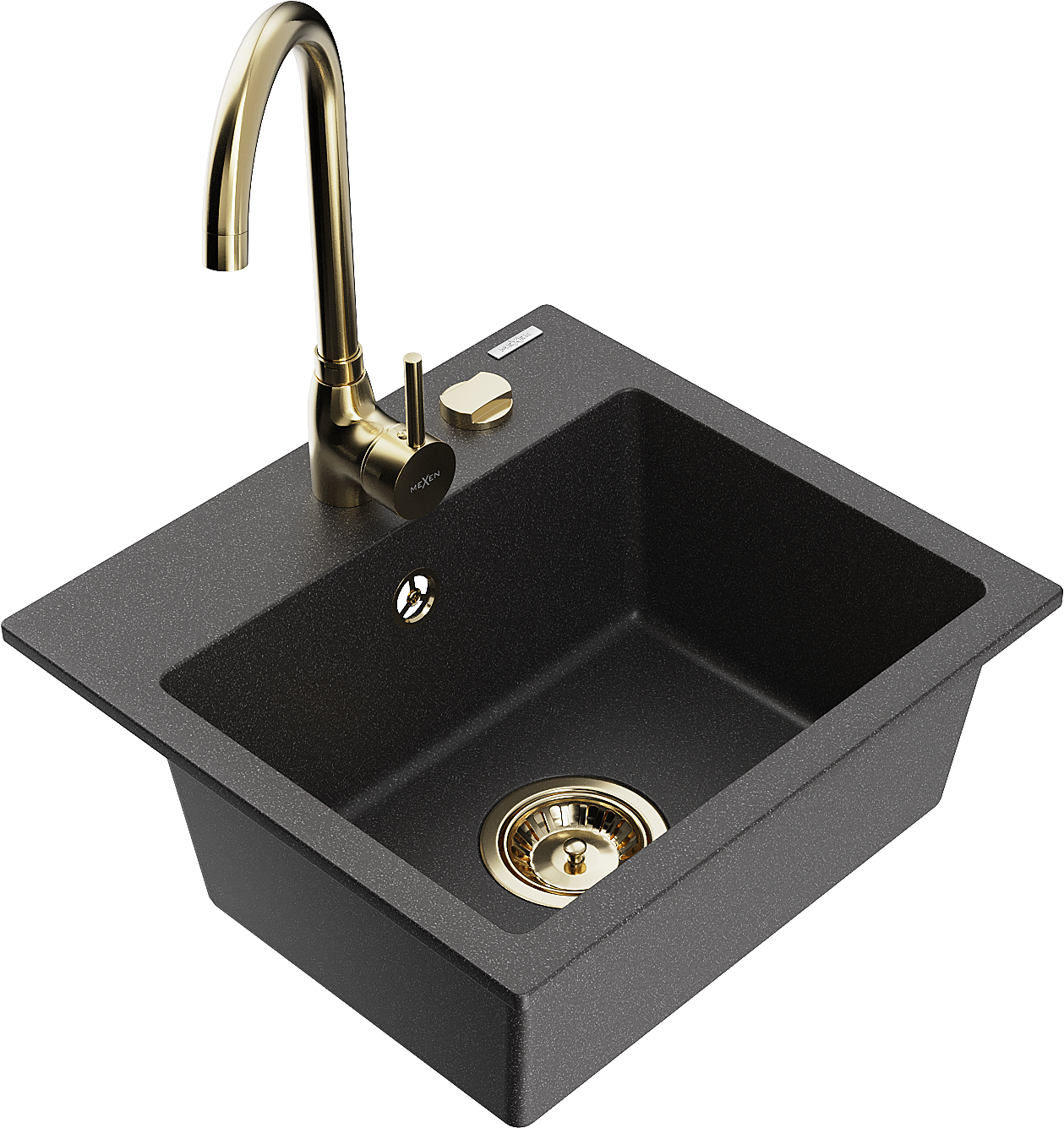 Mexen Milo гранитна мивка с 1 отделение и кухненски кран Telma, черен на пръски - 6505-76-670200-50