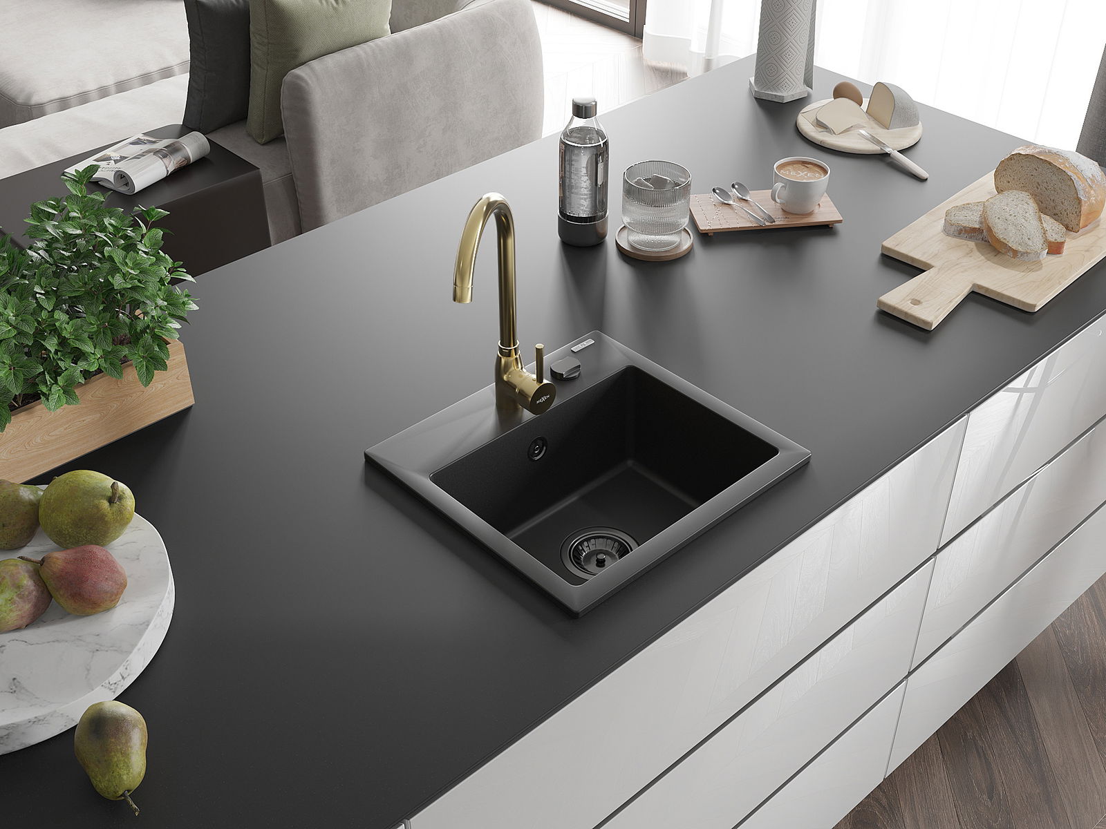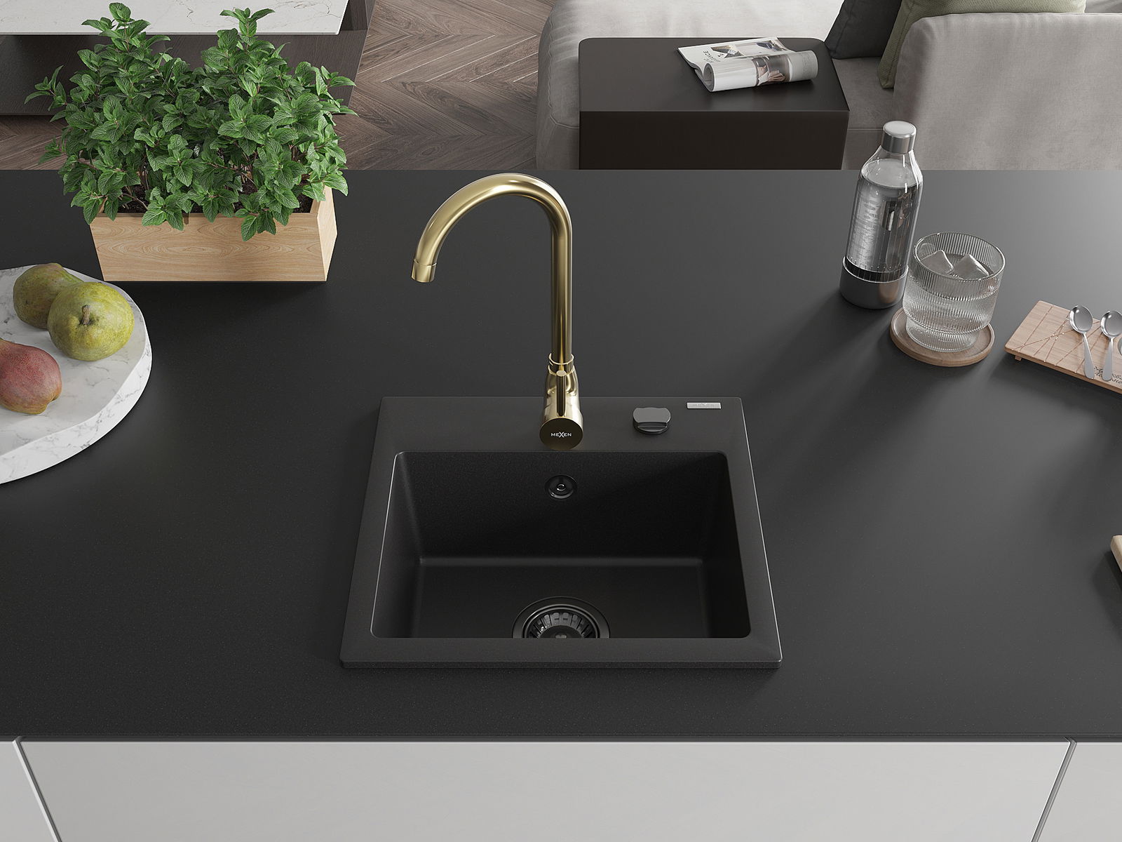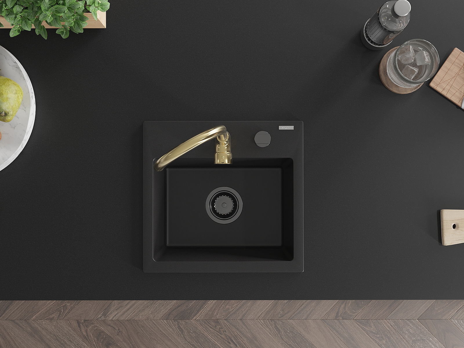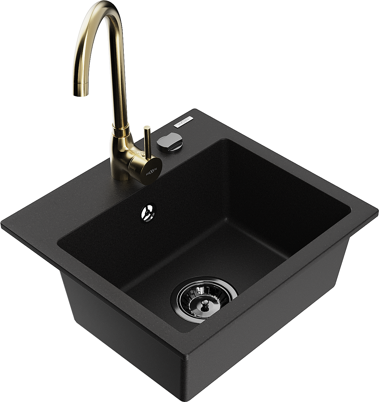 Mexen Milo гранитна мивка с 1 отделение и кухненски смесител Telma, черен - 6505-77-670200-50-B