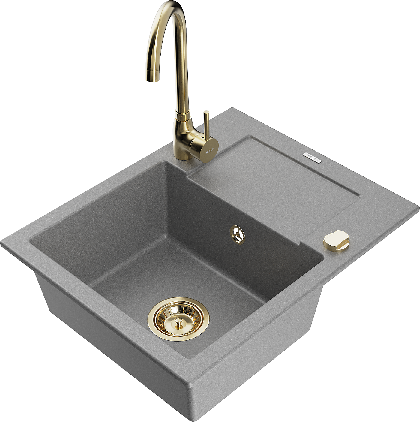 Mexen Enzo гранитна мивка с една камера с отцедник и кухненски смесител Telma, сив - 6506-71-670200-50