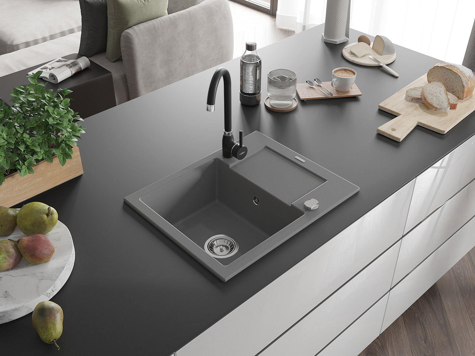 Мивката е направена от висококачествен гранит. Това е елегантно и най -вече практично допълнение към всяка кухня, независимо от нейния стил. Висококачествената и гранитна издръжливост осигуряват много години употреба.