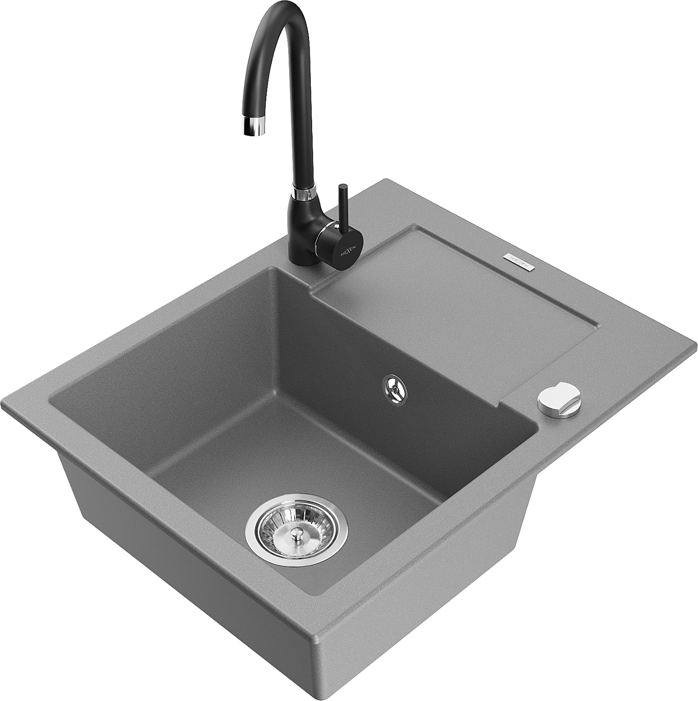 Mexen Enzo кухненска мивка от гранит с 1 кофа и отцедник и кухненски смесител Telma, сив - 6506-71-670200-70