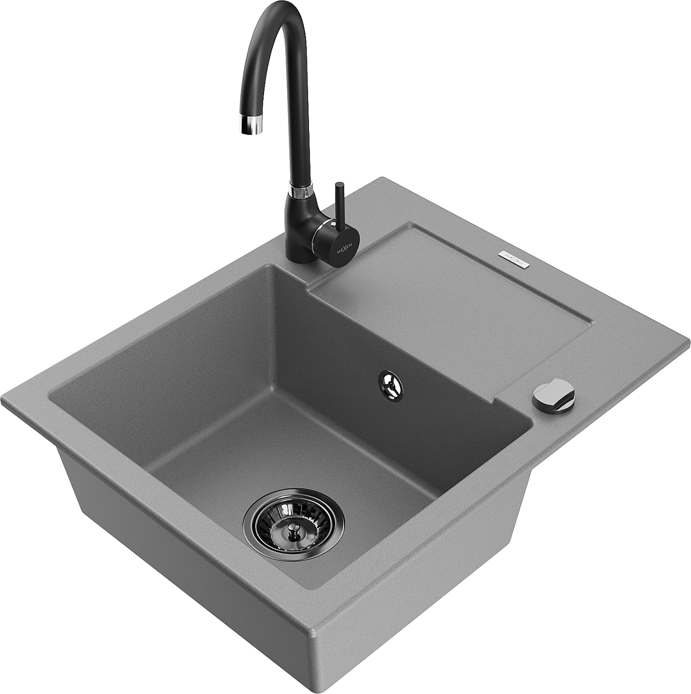 Mexen Enzo еднокоморна гранитна мивка с отцедник и кухненски смесител Telma, сив - 6506-71-670200-70-B