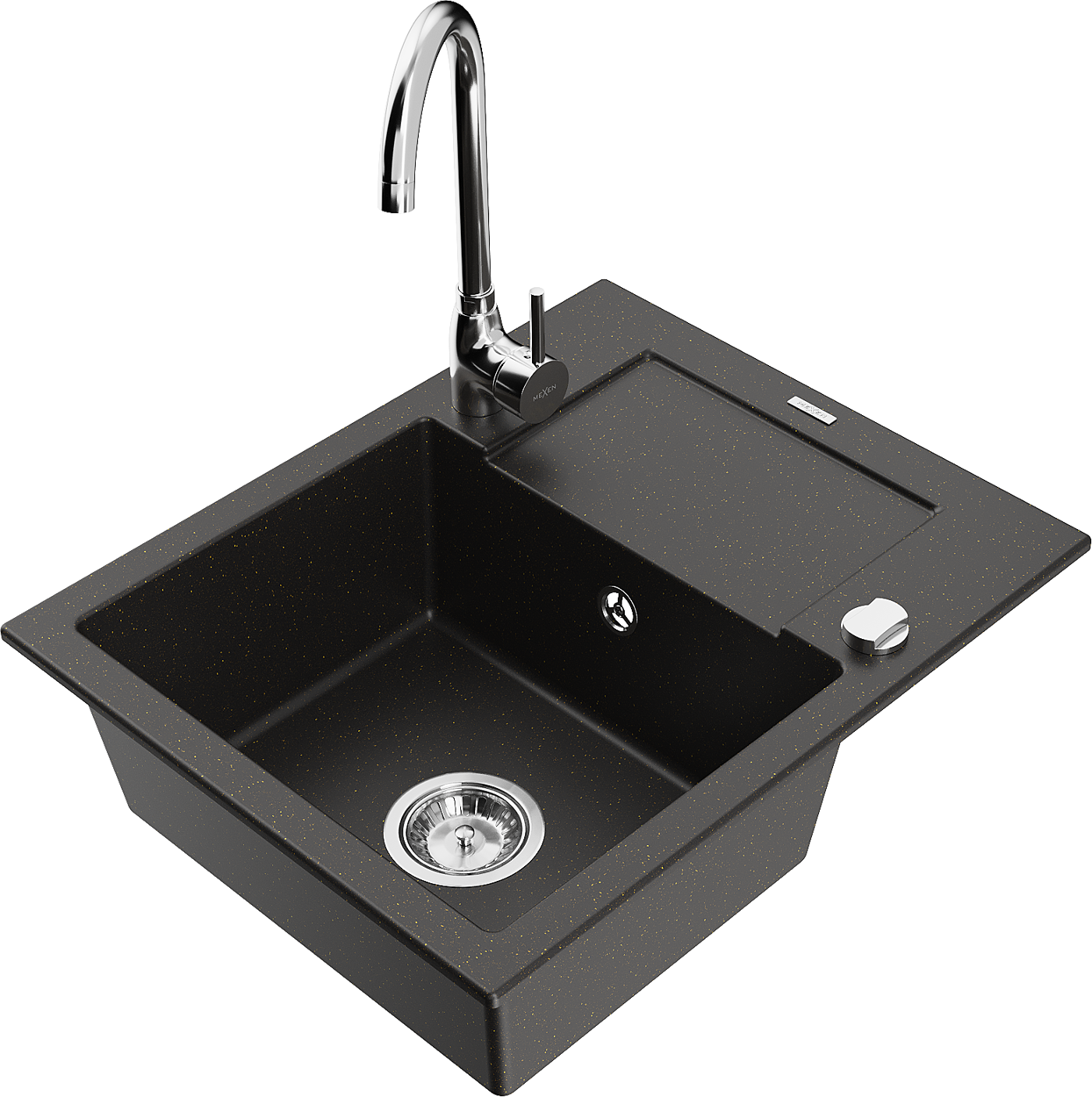 Mexen Enzo гранитна мивка с 1 корито и отцедник и кухненски смесител Telma, черно/златно - 6506-75-670200-00