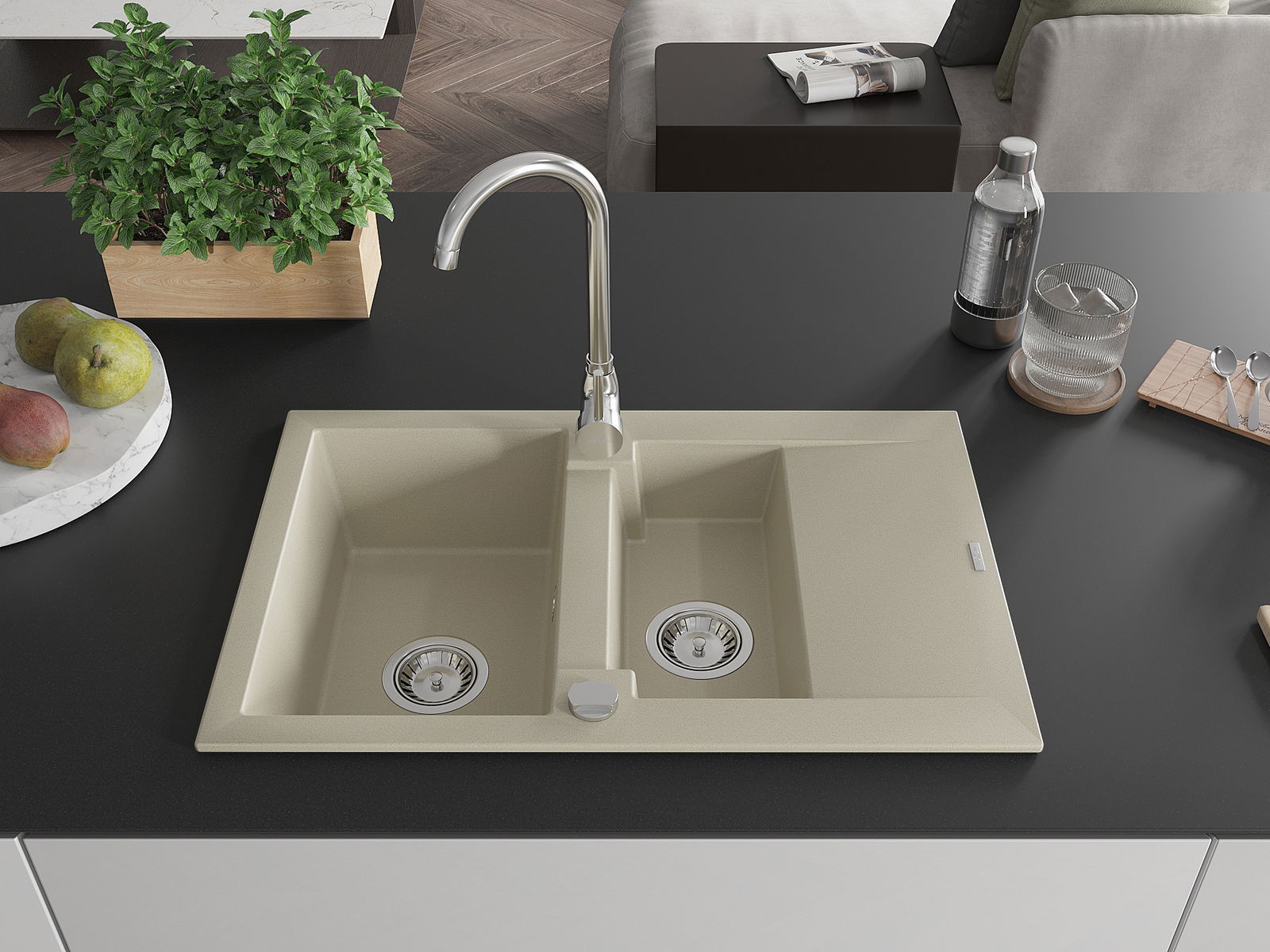 Повърхността на мивката е устойчива на петна и оцветявания, благодарение на което е лесна за поддържане на чистота и запазва цвета си за дълго време на употреба. Естетично и практично допълнение към всяка кухня.
