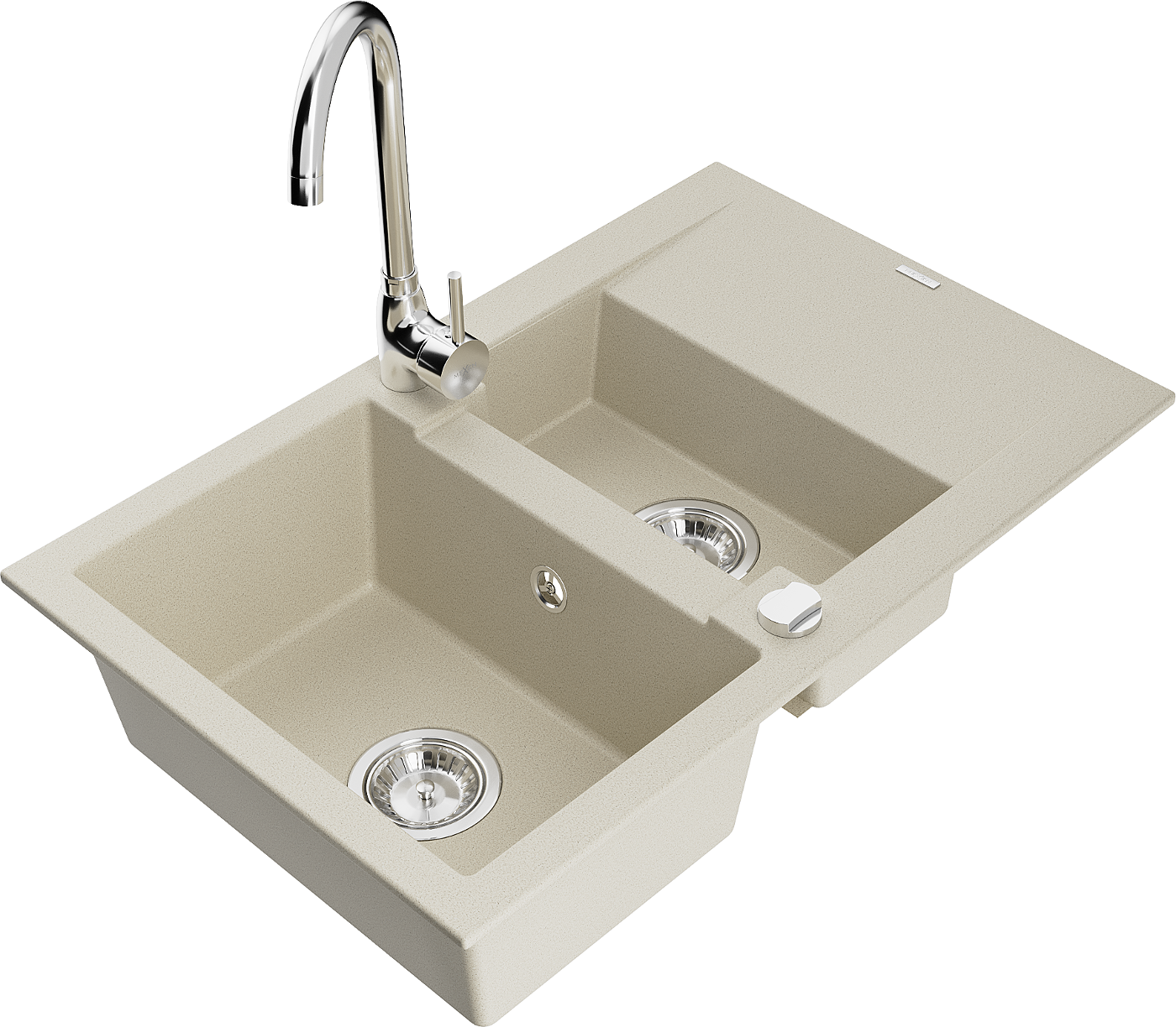 Mexen Gaspar гранитна мивка 1,5-камерна с отцедник и кухненски смесител Telma,