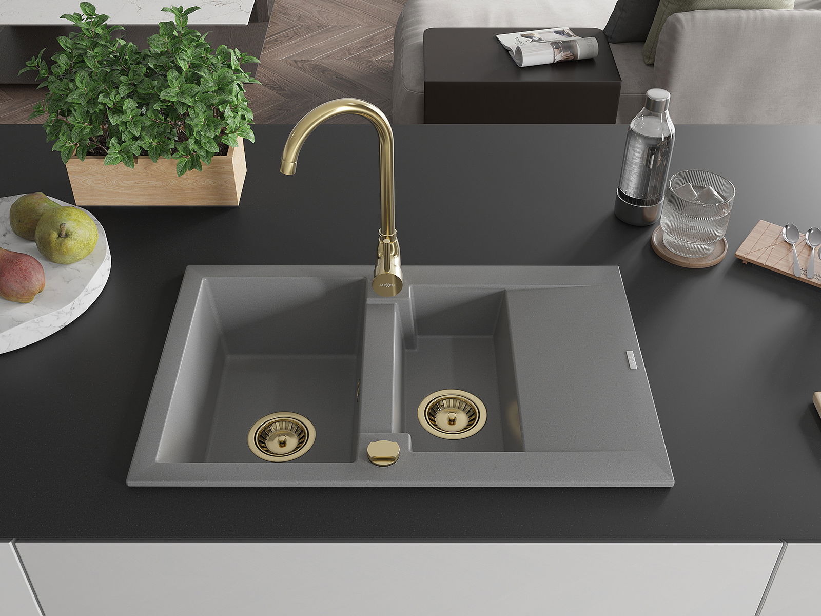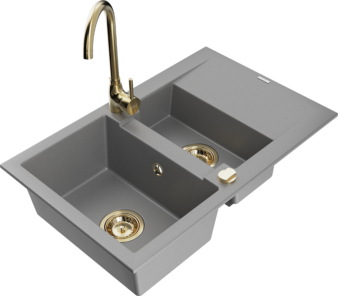 Mexen Gaspar гранитна мивка 1,5-коморна с отцедник и кухненски смесител Telma, сива - 6507-71-670200-50
