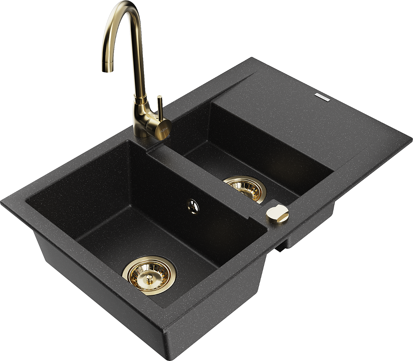 Mexen Gaspar гранитна мивка 1,5-каморна с отцедник и кухненски смесител Telma, черен/сребърен - 6507-73-670200-50