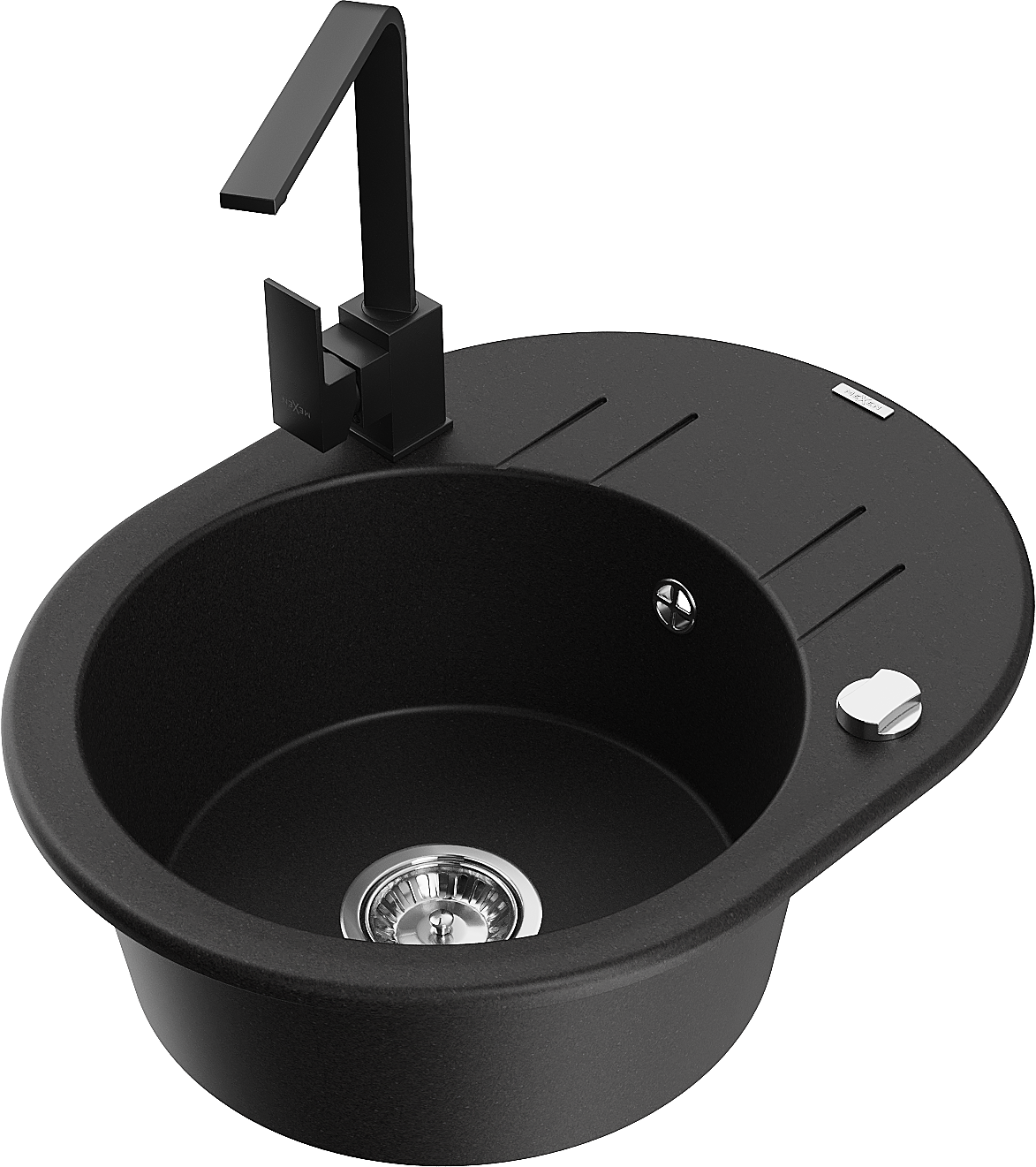 Гранитна мивка Mexen Kevin с 1 камера с отцедник и кухненски кран Rita, черен - 6517-77-670300-70