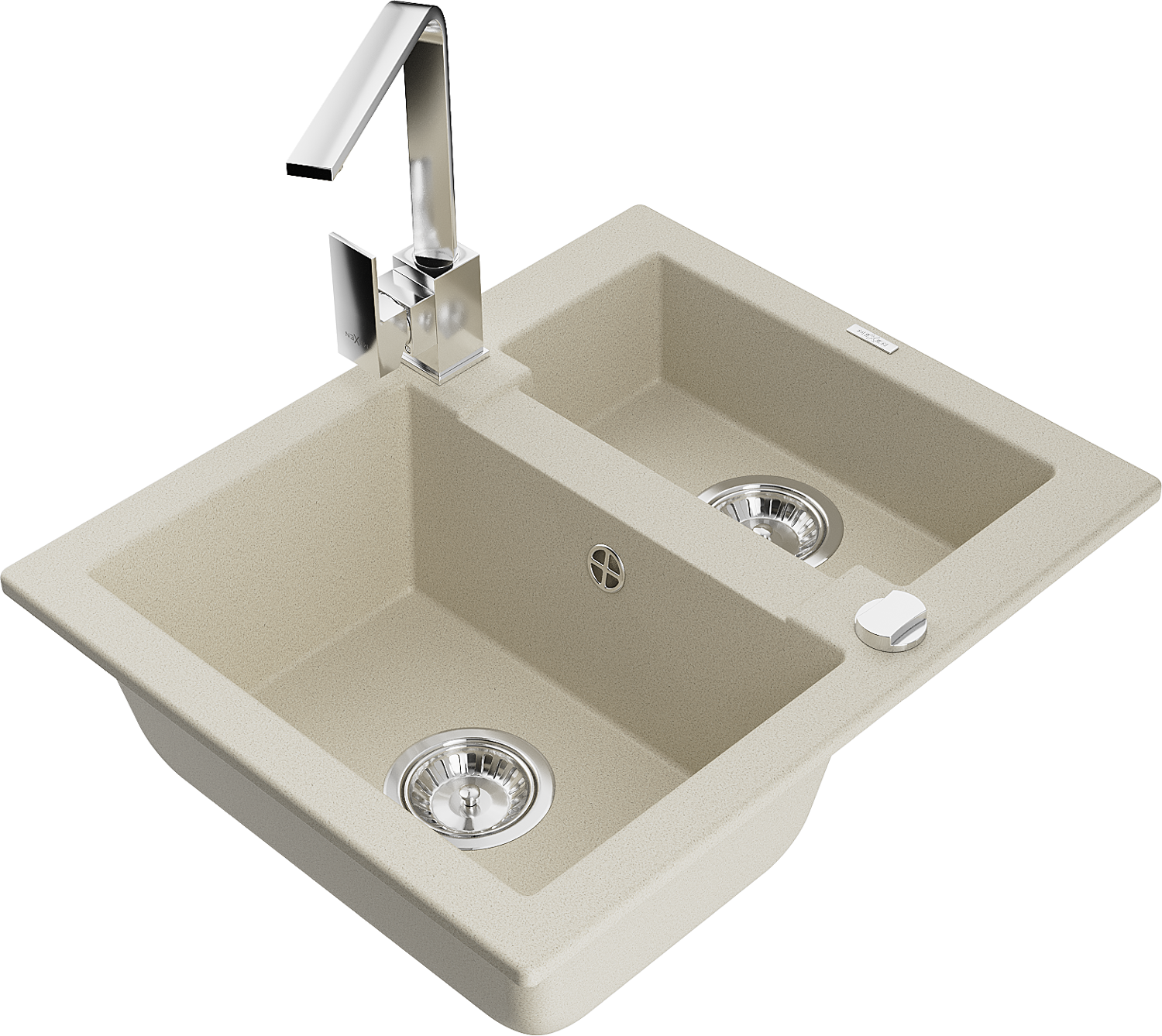 Mexen Carlos гранитна мивка 1,5 камери с кухненски смесител Rita, бежов - 6518-69-670300-00
